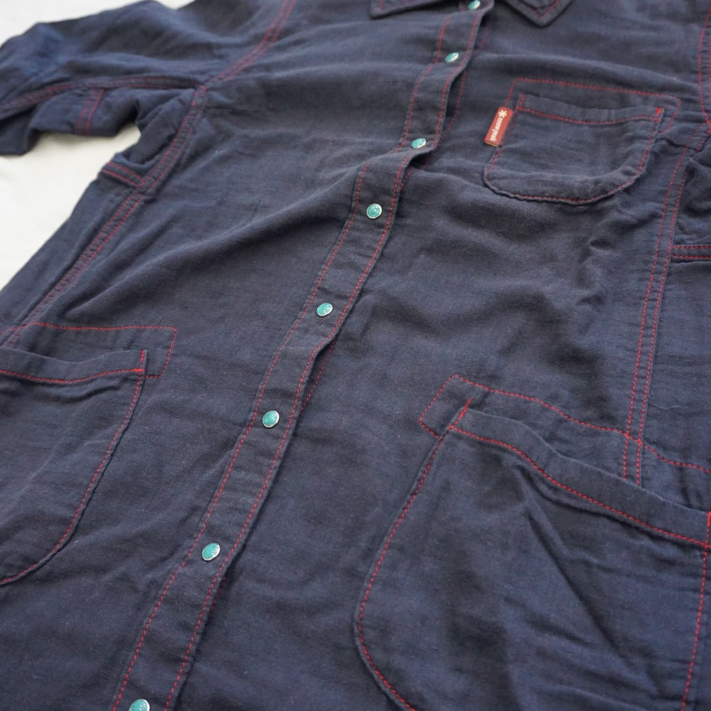 美品 スノーピーク(snowpeak) シャツワンピース SH-W00704NV ワンピース 古着 ネイビー レディース サイズ/L [6/25値下げ]
