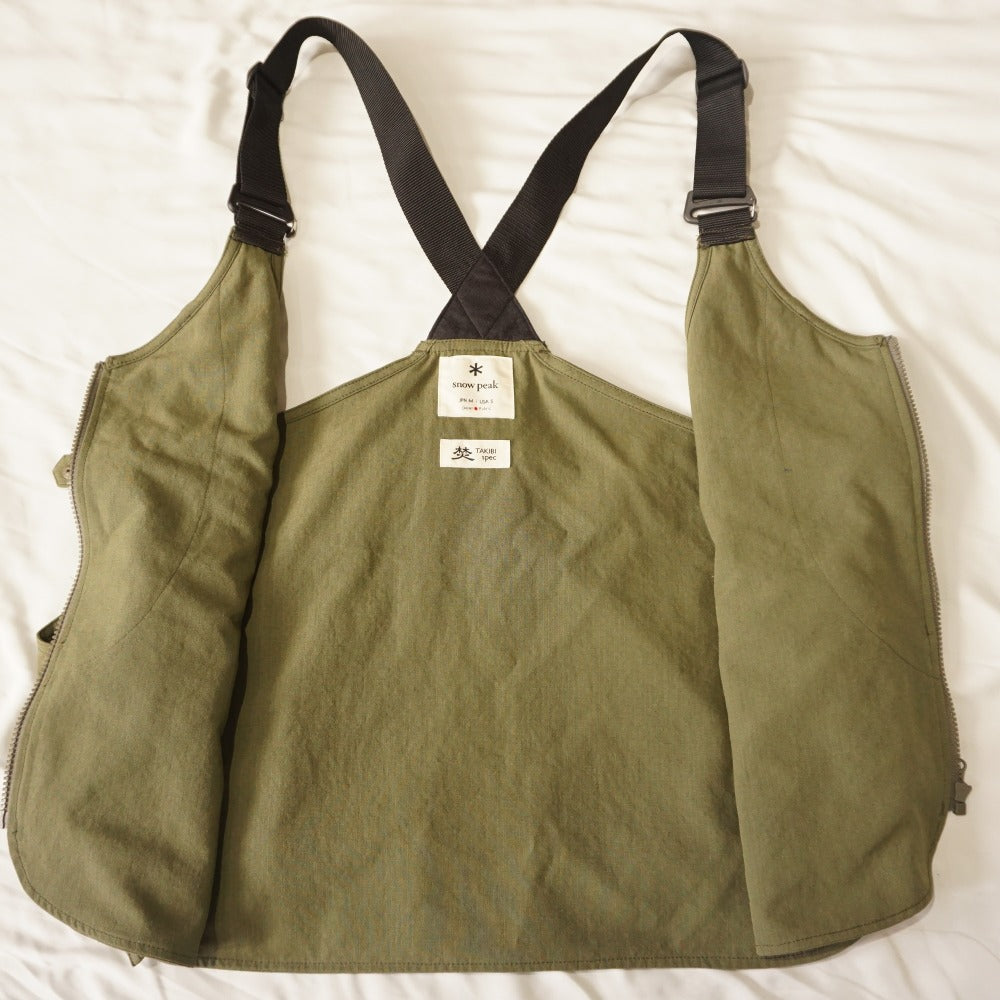 新品同様 スノーピーク(snowpeak) タキビベスト カーキ JK-19SU106 ジャケット オリーブ メンズ サイズ/M アラミド素材 燃えにくいベスト 焚火に最適 [送料無料]
