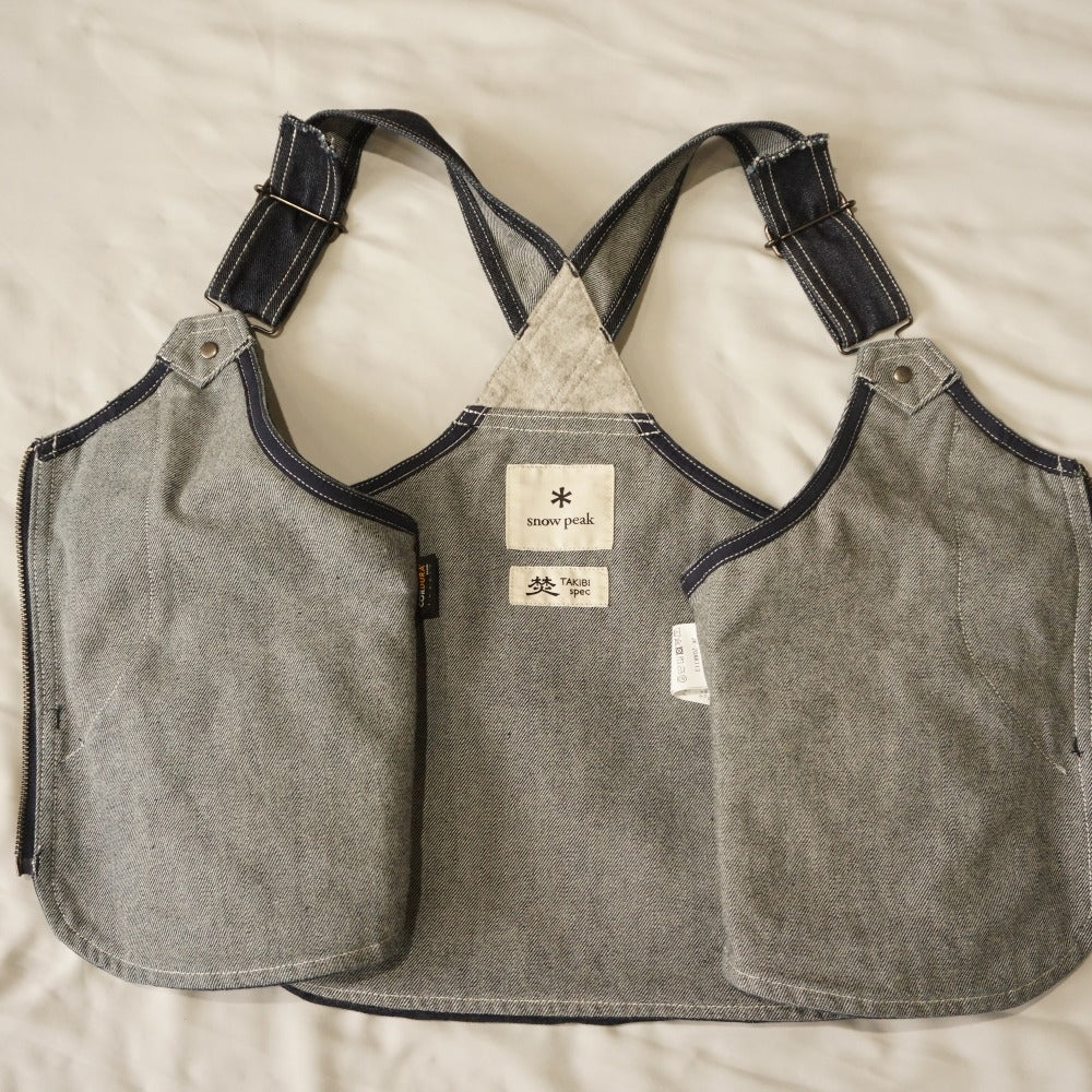 焚火など火に強いデニム素材で作られたベストです。