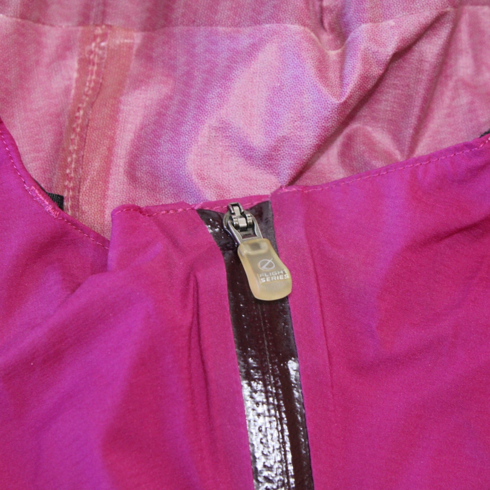 表生地にマルチカウントのナイロンを使用し、よりソフトな風合いを実現した女性用ランニング用防水アウター。