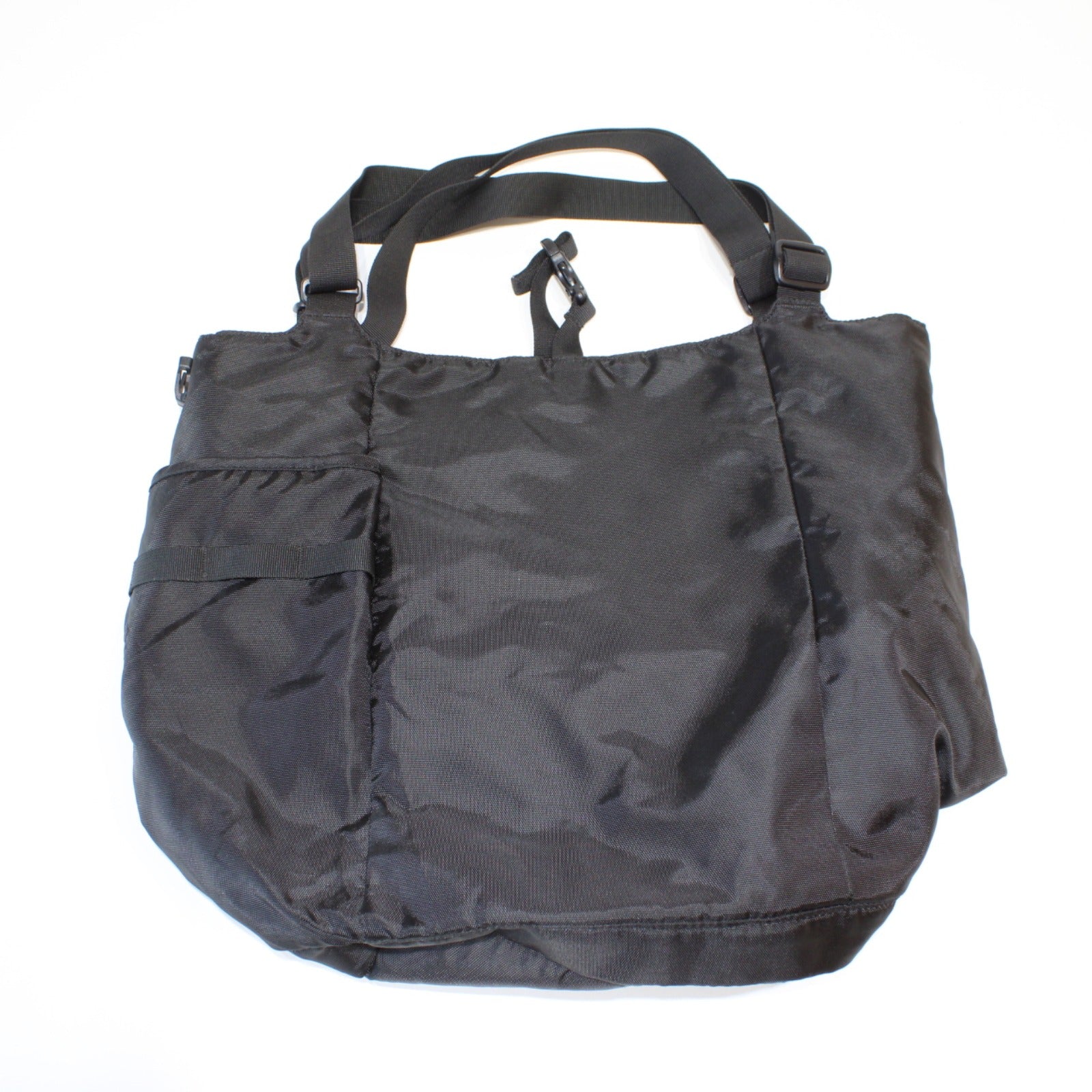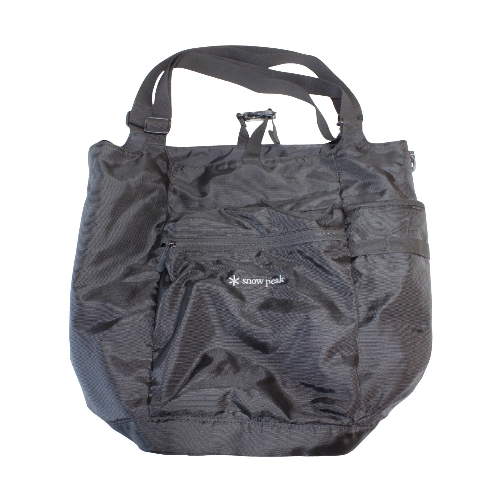 スノーピークのトートバッグです。 外側に2か所、内側に1か所、ファスナー付きポケットがあるバッグです。 また、側面には、ちょっとしたアウトドアギアが掛けられるループが、4つございます。 アウトドアシーンだけでなく、普段のお買い物などでもお使い頂けるバッグです。