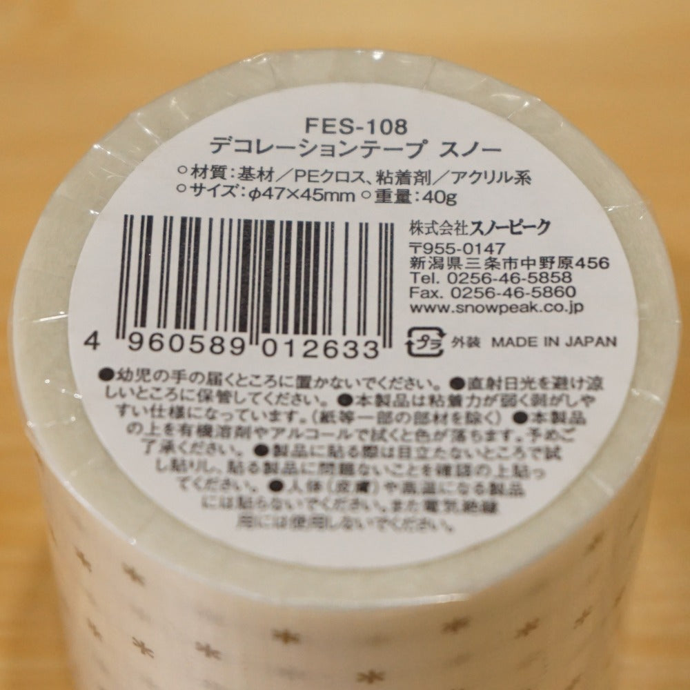 | 商品説明 | スノーピークのデコレーションテープ スノー/FES-108 2個セットです。 アスタリスクをモチーフにしたパターンデザインを施した養生テープ。 パターンの中にスノーピークロゴと雪峰祭ロゴをさり気なく配しています。 養生テープは水に強く、手でまっすぐ切れます。お気に入りのギアに貼って自分仕様にカスタマイズできます。 |