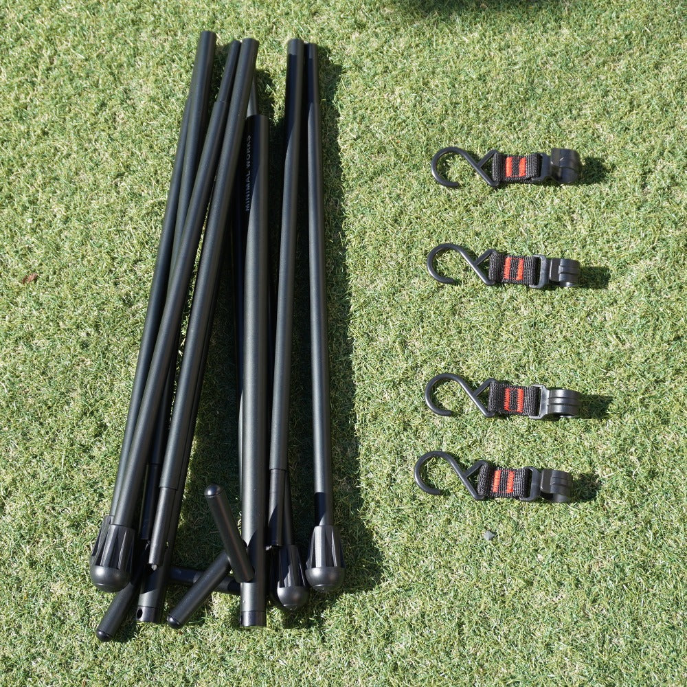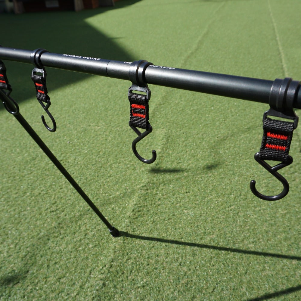 付属の固定式フックの1つが、 逆向きになっているものはございますが(画像参照) 設置や吊り下げには問題なくご使用頂けます。 また、ラバーフットやポールの接続部に 細かなキズはわずかございますが、 その他目立った汚れや変形などはなく、状態は良好です。 |