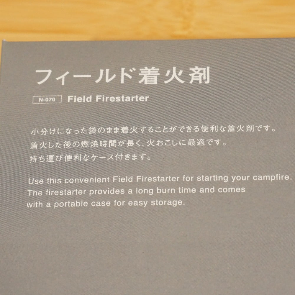 | 商品説明 | スノーピークのフィールド着火剤/N-070 です。 小分けされた袋のまま着火することができる着火剤です。 着火した後の燃焼時間が長い、パラフィンという成分が採用されています。 |