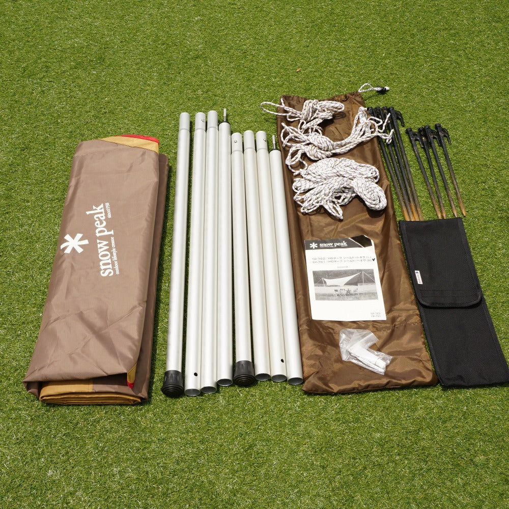 商品説明 | スノーピークの定番ヘキサタープ、HDタープ”シールド”ヘキサM/TP-761です。 タープ本体に、ウイングポール280cm、240cm、ソリッドステークペグ30、40、ペグケースの付いたお得なセットです。 (Pro.セットのペグハンマー無しとなります) |