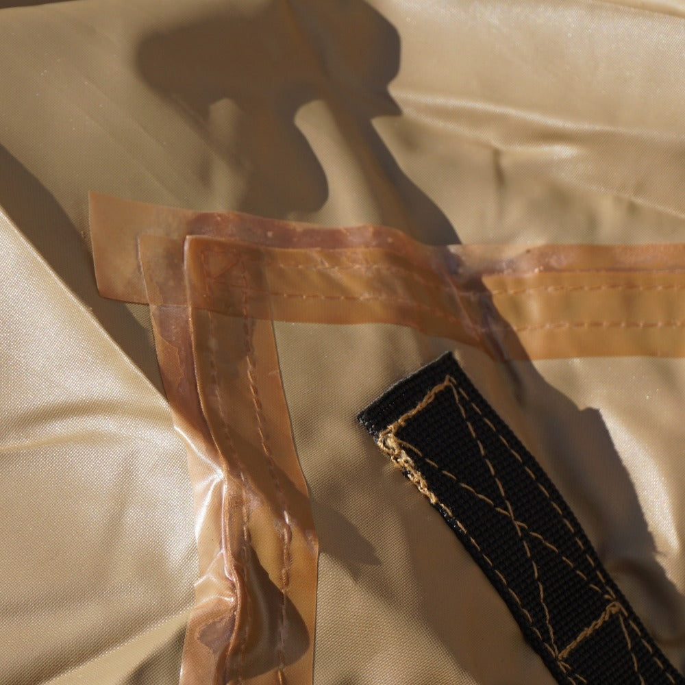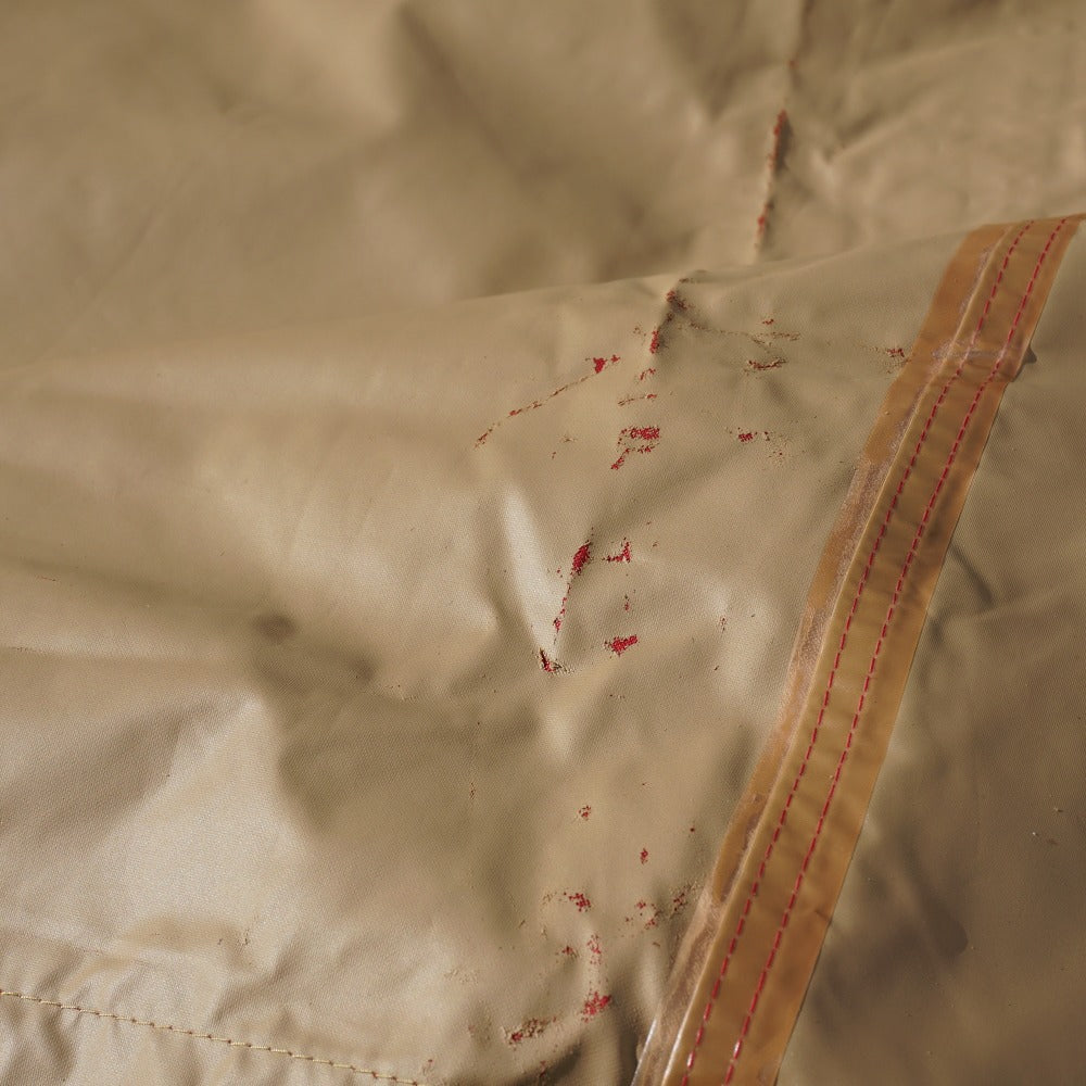 タープ裏面に一部コーティング剥がれのようなキズや汚れがございますが、大きなベタつきも感じられず、使用に支障のある傷や破れ、穴などはございません。