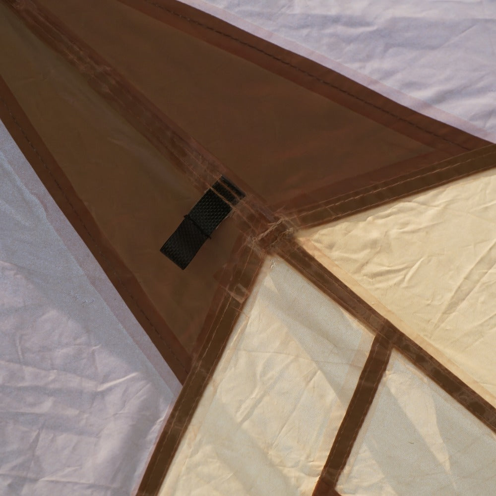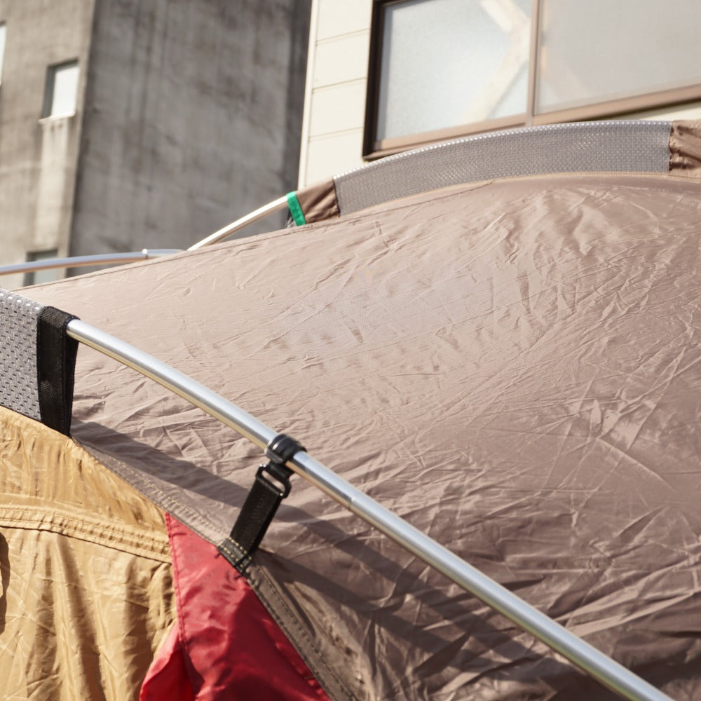 入口パネル含め、各ウォールにメッシュパネルを備えたシェルターです。