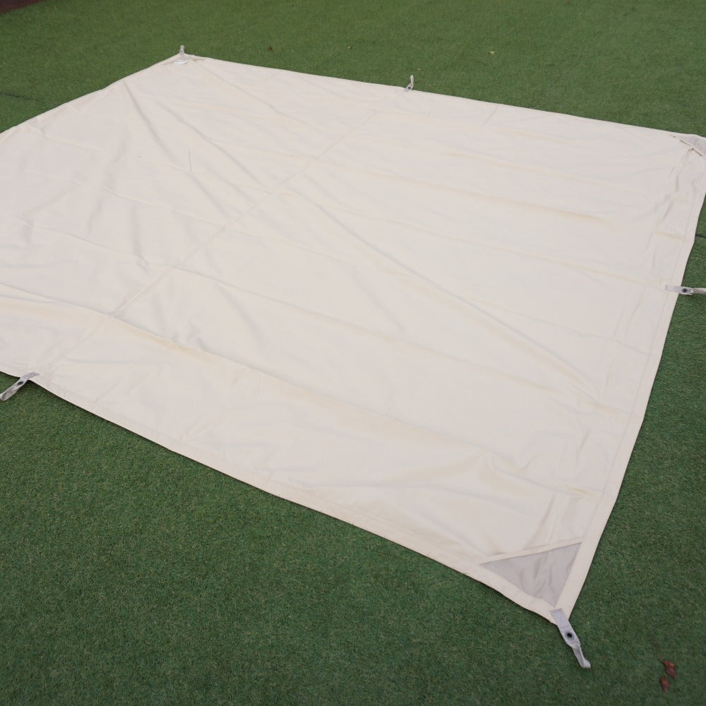 ペグが二本曲がっておりますが、タープ本体はとても綺麗で、快適にご使用いただけます。 |