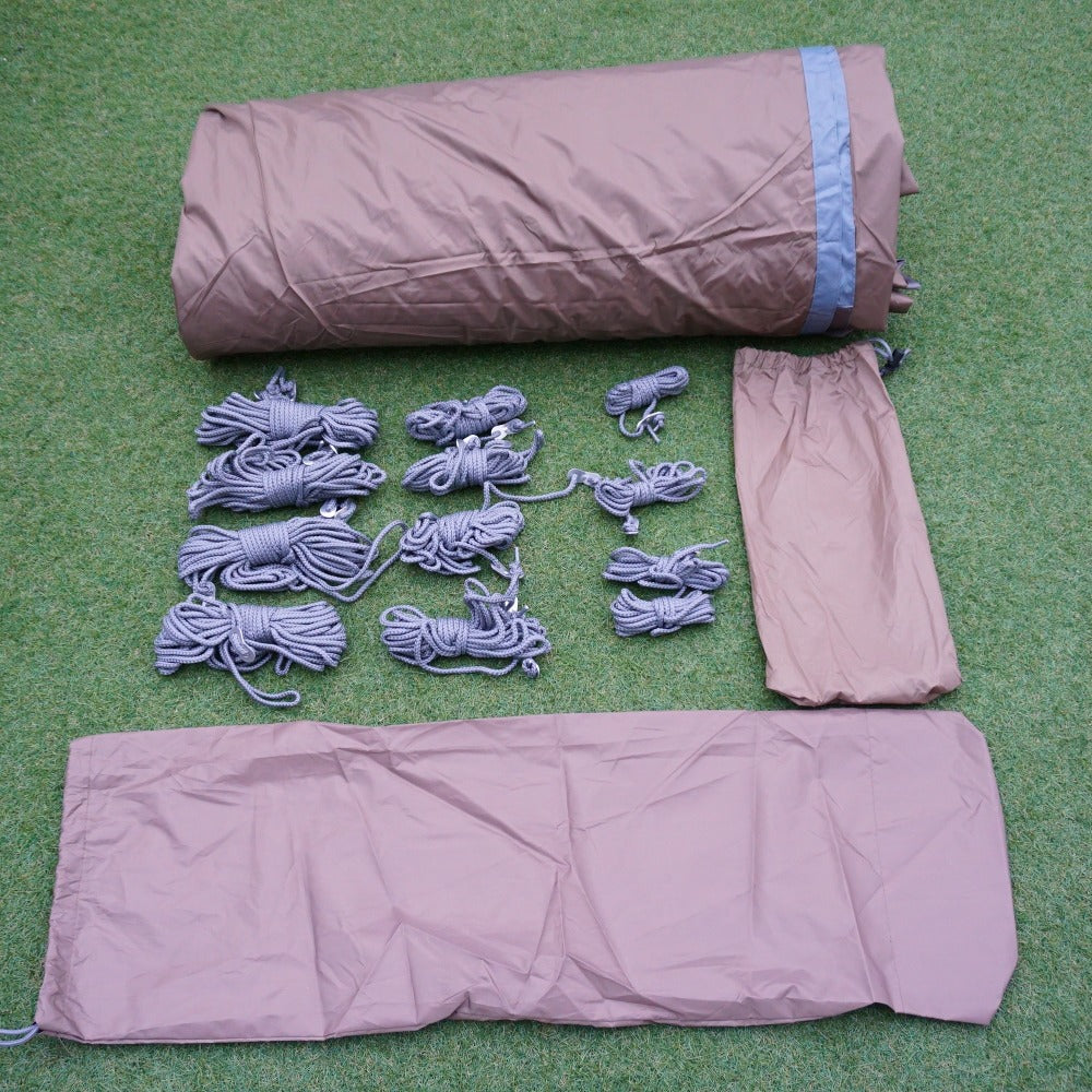 収納ケース内部に一部破れがございますが、タープ本体にはシームテープの剥がれや破れなどなく、状態はとても良好です。 |
