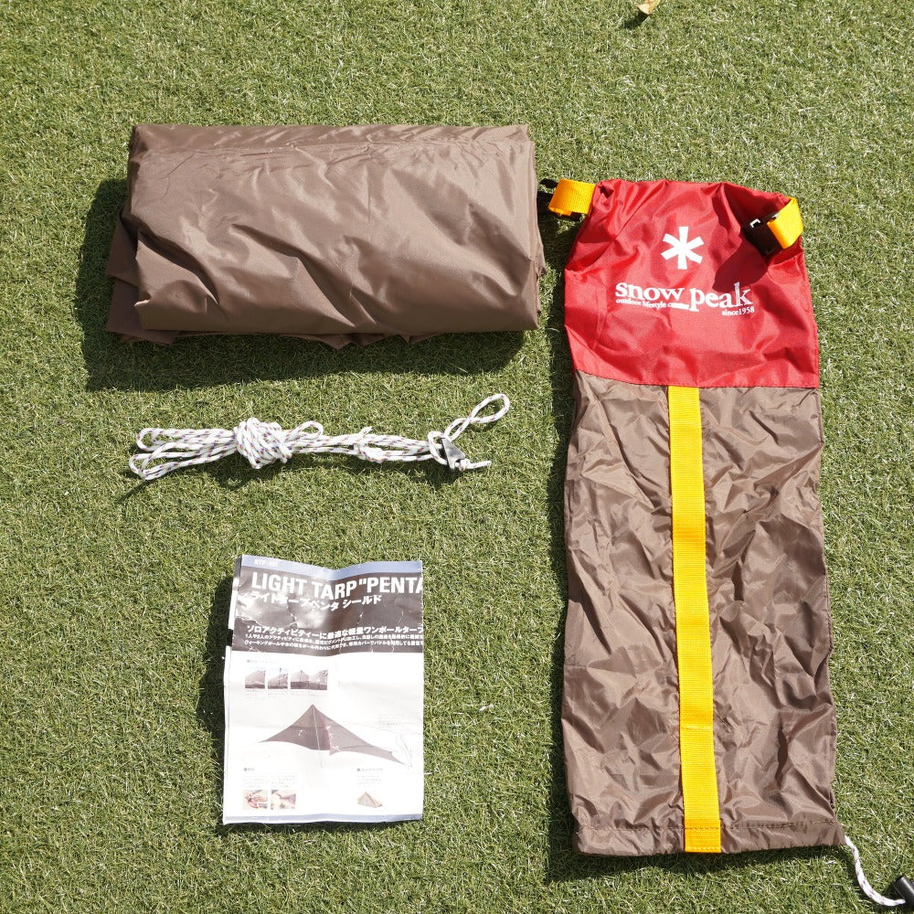 商品説明 | snowpeak(スノーピーク)の STP-381 ライトタープ“ペンタ”シールド /STP-381 です。 ソロキャンパーに人気のワンポールタープです。 ポールの代わりにトレッキングポールやパドルでもセッティングできます。 *ライトタープポール1500/TP-160は付属しておりませんので、別途ご準備ください。 サイズ:400×320×150cm 収納サイズ:32×9×20(h)cm 重量:790g(本体のみ) 対応人数:1名 |