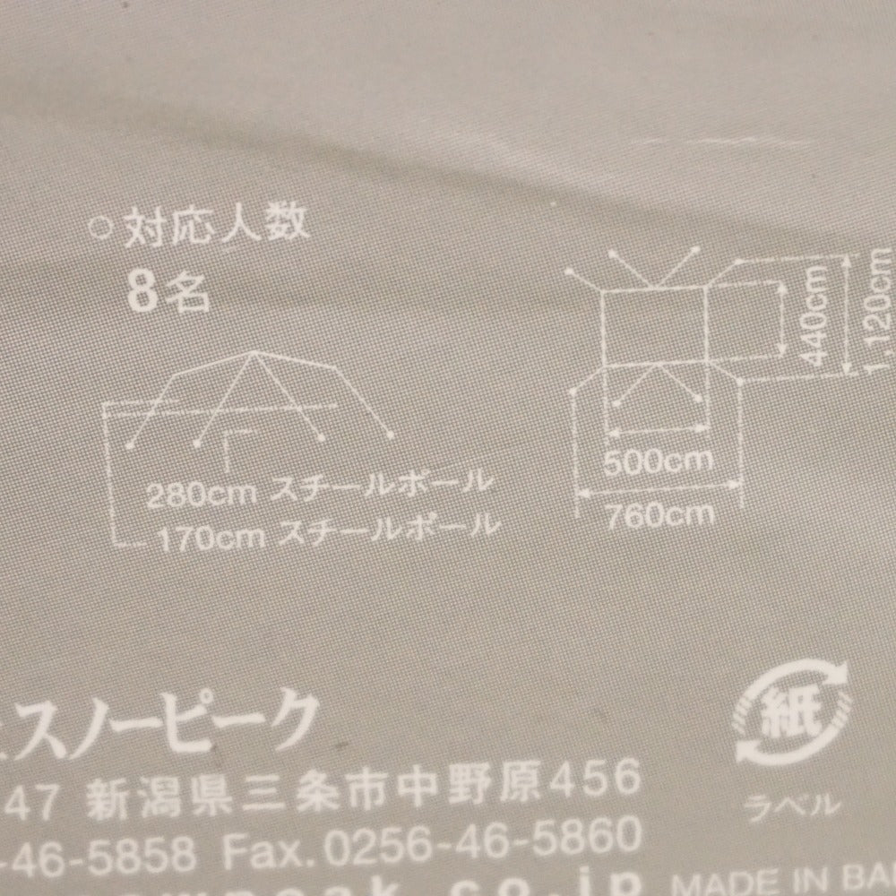 未使用 スノーピーク(snowpeak) アメニティタープレクタLセット TP-852S タープ スチールポール・スチールペグ付