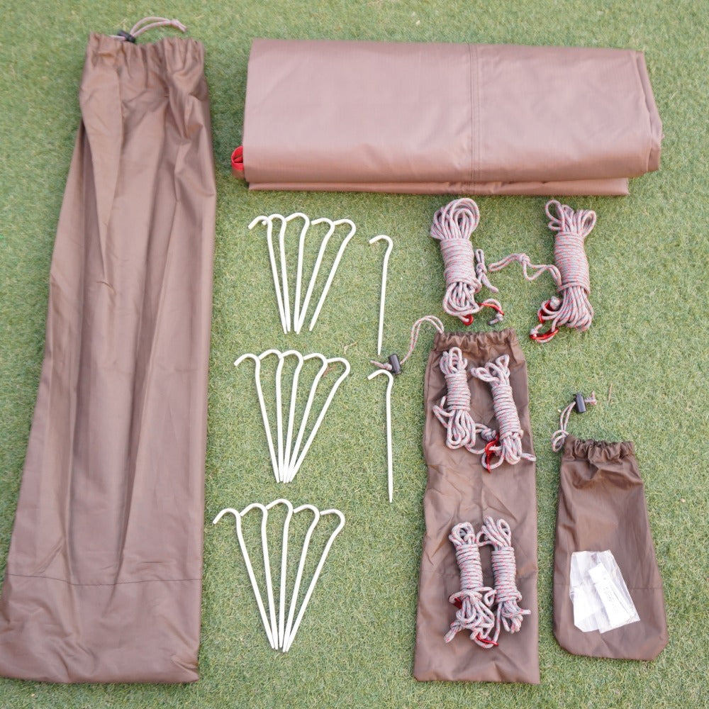 付属品 | 収納ケース ポールケース、ジュラルミンペグ17本、自在付ロープ6本(二又用10m×2/4m×4)、ロープケース、ペグケース、シームグリップ剤 |