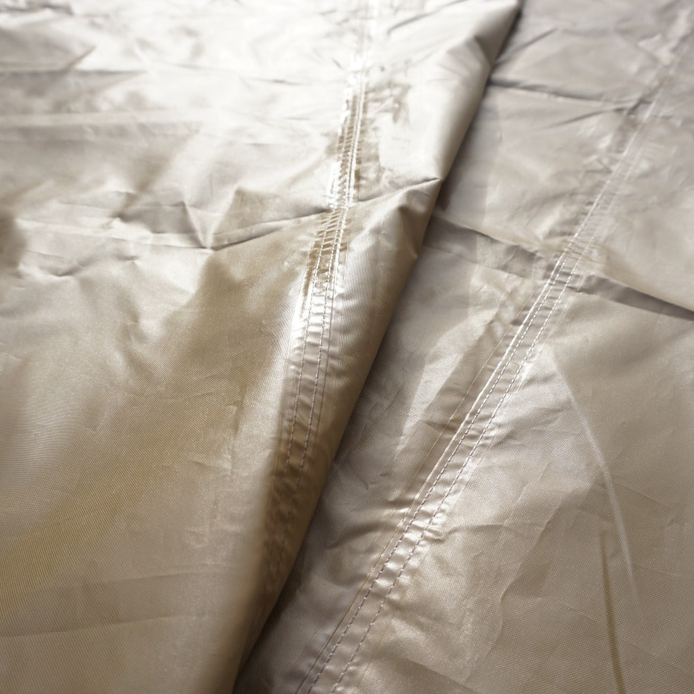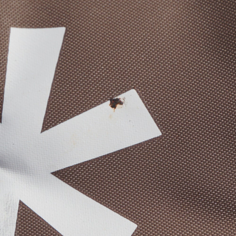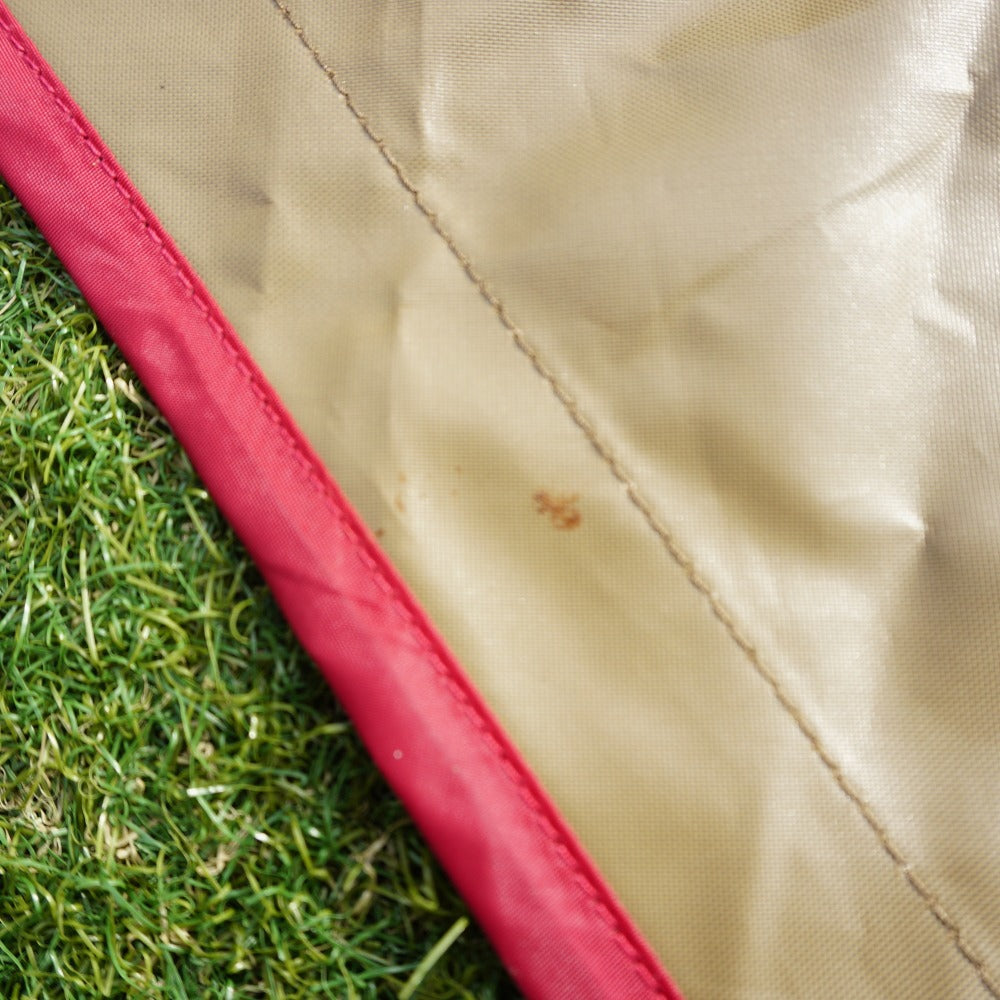 数か所、薄い汚れ(画像4,5枚目)があり、 タープ本体にあるロゴのアスタリスクに1か所、 数ミリほどの剝がれはございますが、 その他目立った汚れはなく、裏面の防水コーティングの経年劣化や シームテープの剝がれなどもなく、状態は良好です。 |