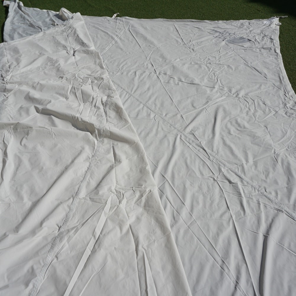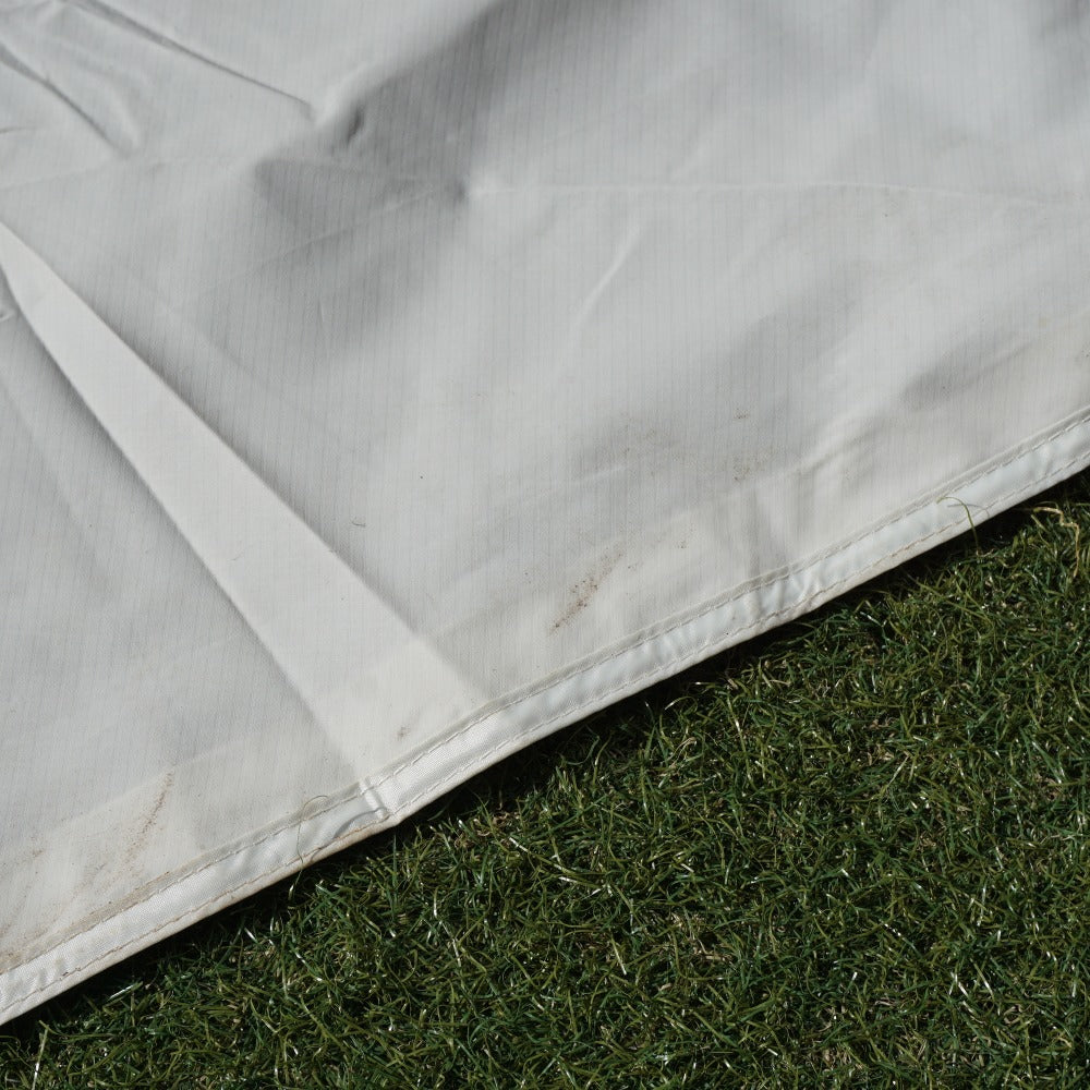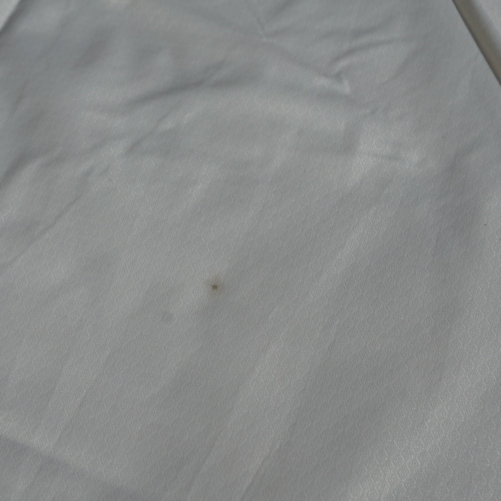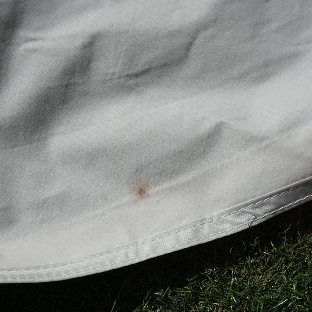 ペグが2本、少し変形しており、ロープに一か所擦れがございます。 また、幕体には、フチに一か所薄い土汚れがあり 全体的に、数ミリほどの薄い茶色の汚れ(画像参照)は点在しておりますが、 大きく目立った汚れなどなく、ポールには変形などないため、状態は良好です。 |