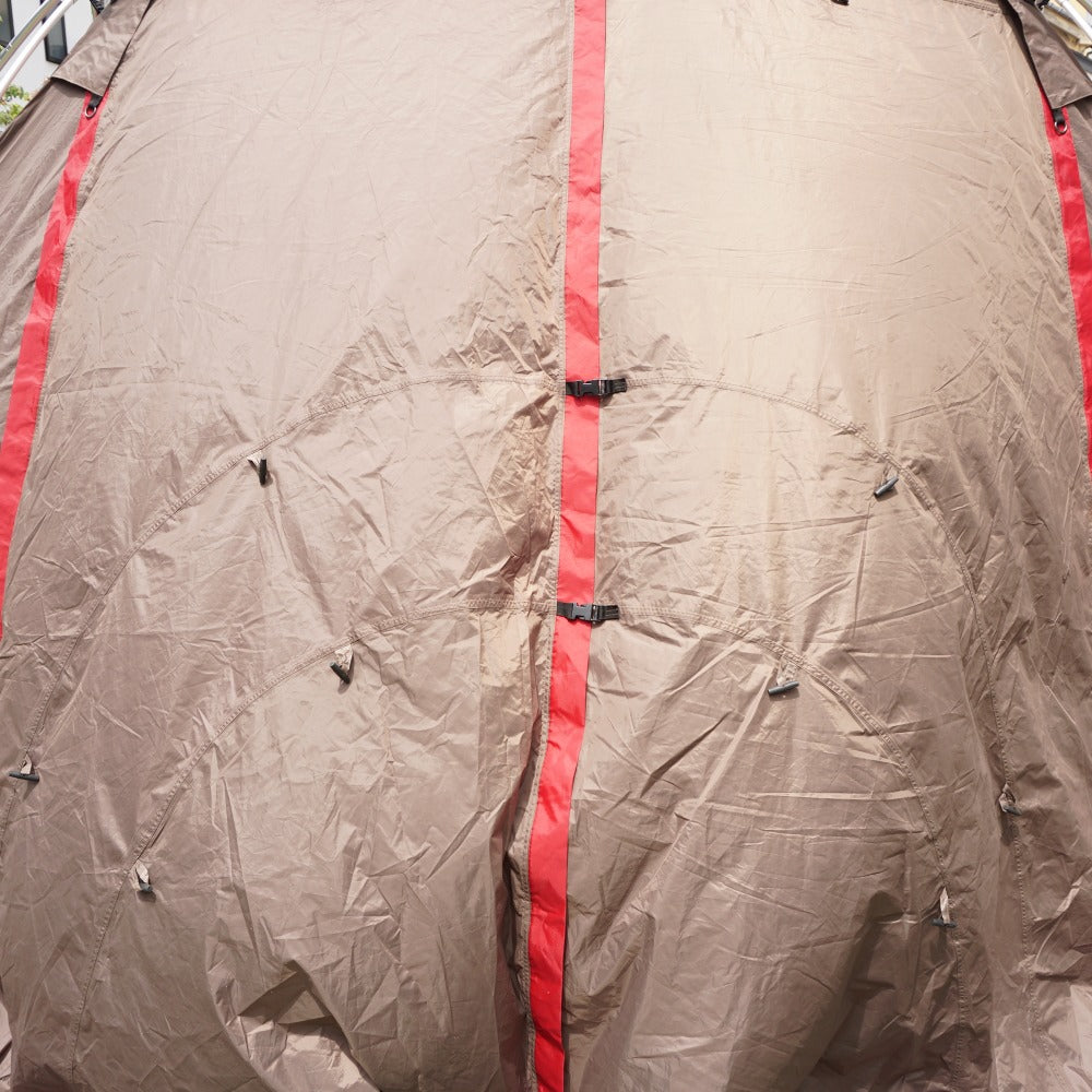 | 商品説明 | スノーピークの定番ロングセラーシェルター、リビングシェル/TP-623Rです。 別売りオプションのシールドルーフとセットで販売致します。 完成された高剛性のフレームワークで、風の日も安心のシェルターです。 新たにドッキングシステムを採用し、アメニティドームやランドブリーズ6、ドックドームなどのテントとトンネルを介さずにドッキングすることが可能です。 こちらは、シェルター(リビングスペース)ですので、宿泊の際には別途インナールームのお求めが必要となります。 |