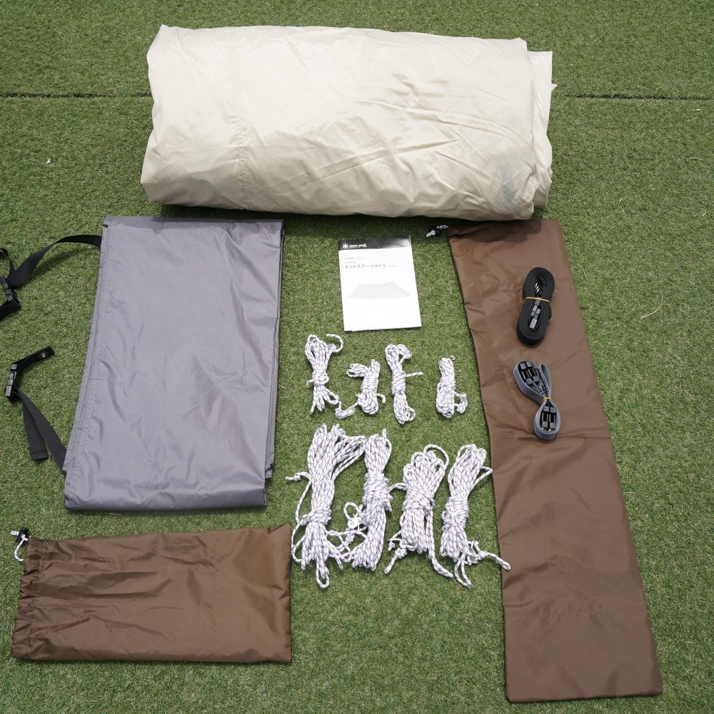 | 商品説明 | スノーピークのランドステーションL アイボリー/TP-821IVです。 人気のランドステーションがアイボリーカラーとなり、 グラマラスなキャンプを演出してくれます。 6~8人対応のため、ご家族やグループでのキャンプにぴったりなタープです。 ※ペグとポールは付属していません。 設営には210cmのウィングポール2本、 メインパネルの跳ね上げ用に140cmのウィングポール1本の利用を推奨しています。 |
