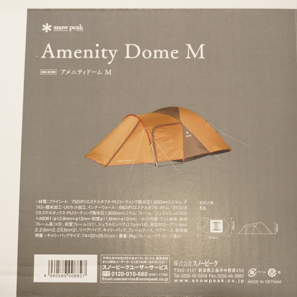 | 商品説明 | スノーピークの定番ロングセラーテント、アメニティドームM/SDE-001RHです。 3〜5人向けで前室も広々としてますので、 人数が多くても荷物を外に出す事でゆとりある空間が生まれます。 |