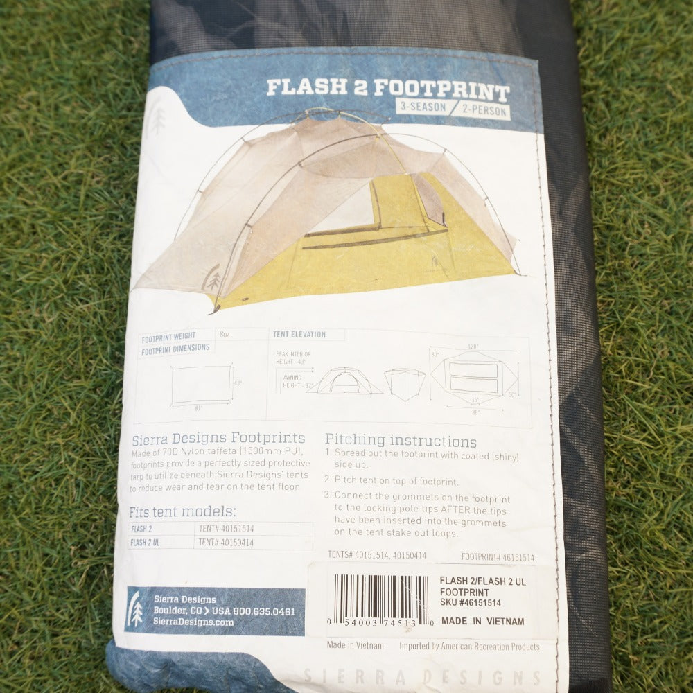 | 商品説明 | Sierra Designs のソロテント Flash2と、 専用のフットプリント(グランドシート) セットです。 ソロサイズのドーム型テントです。 インナーテントの側面がメッシュ地になっているため、 春~秋口ごろに適したテントです。 |