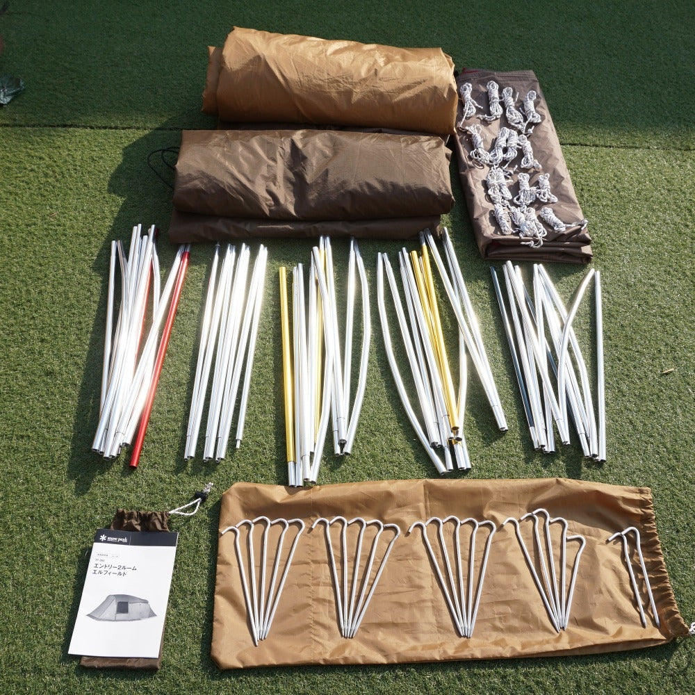 | 付属品 | 収納ケース ペグケース、説明書、フレームケース、ジュラルミンペグ22本(※内4本短いサイズになっております)、自在付ロープ16本(2.5m×8/1.5×m8) |