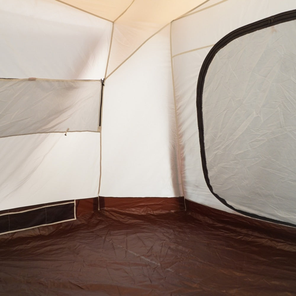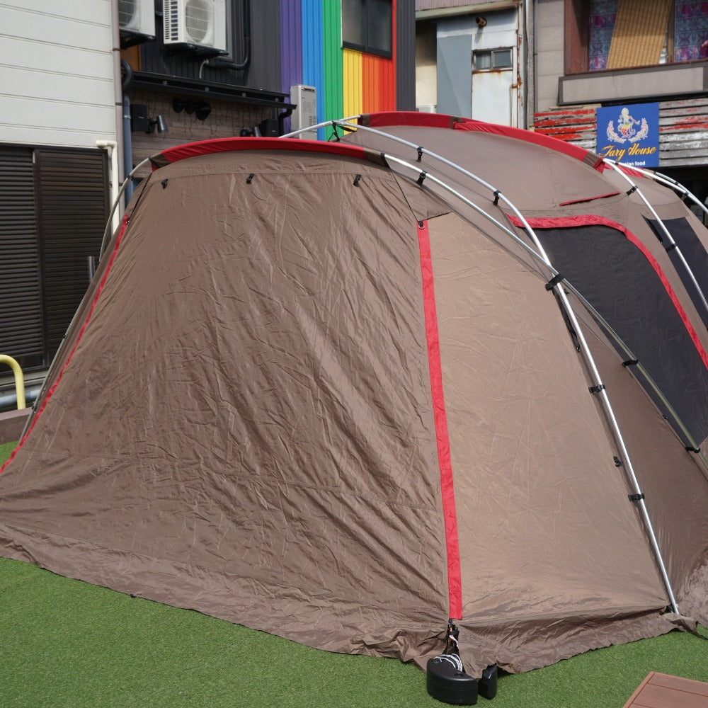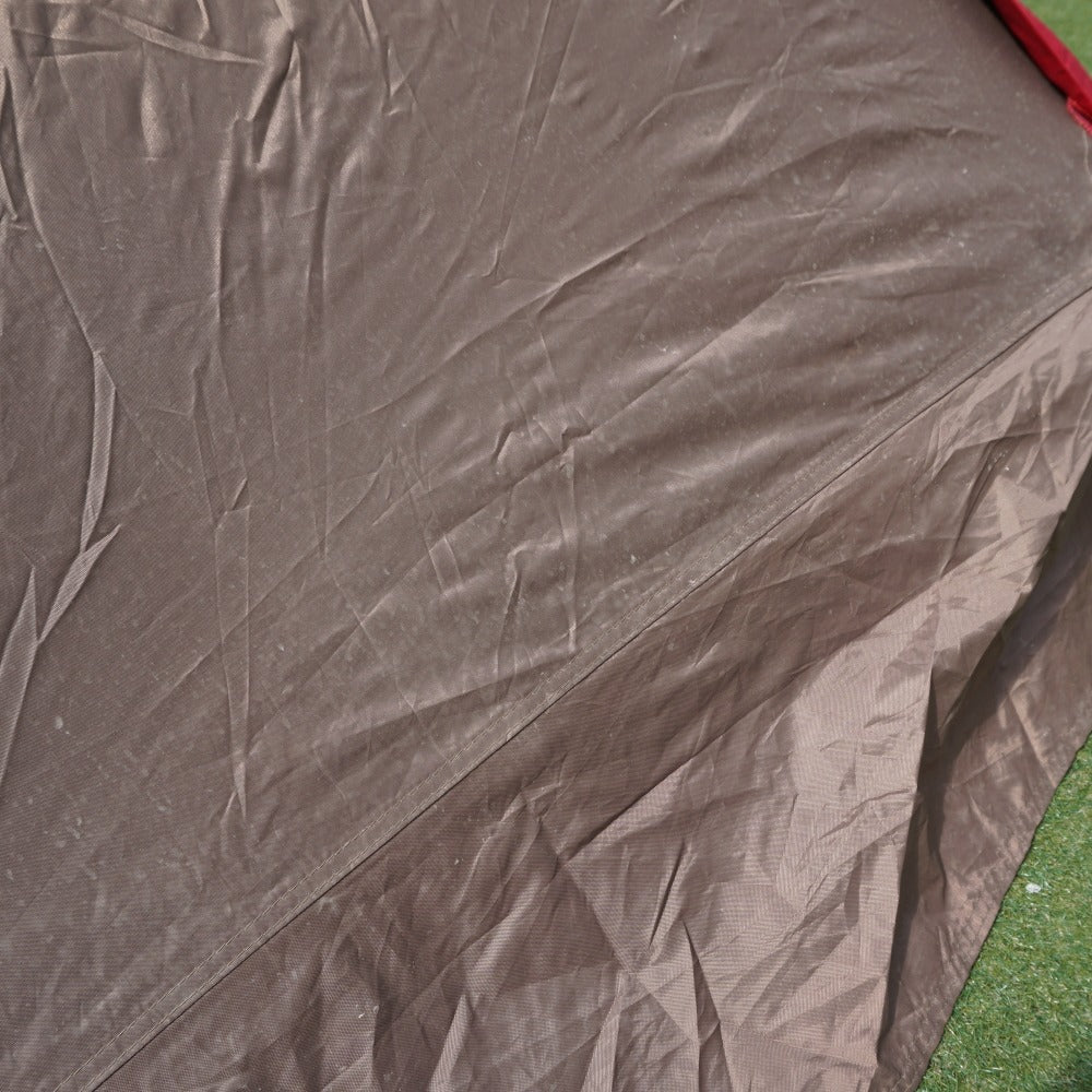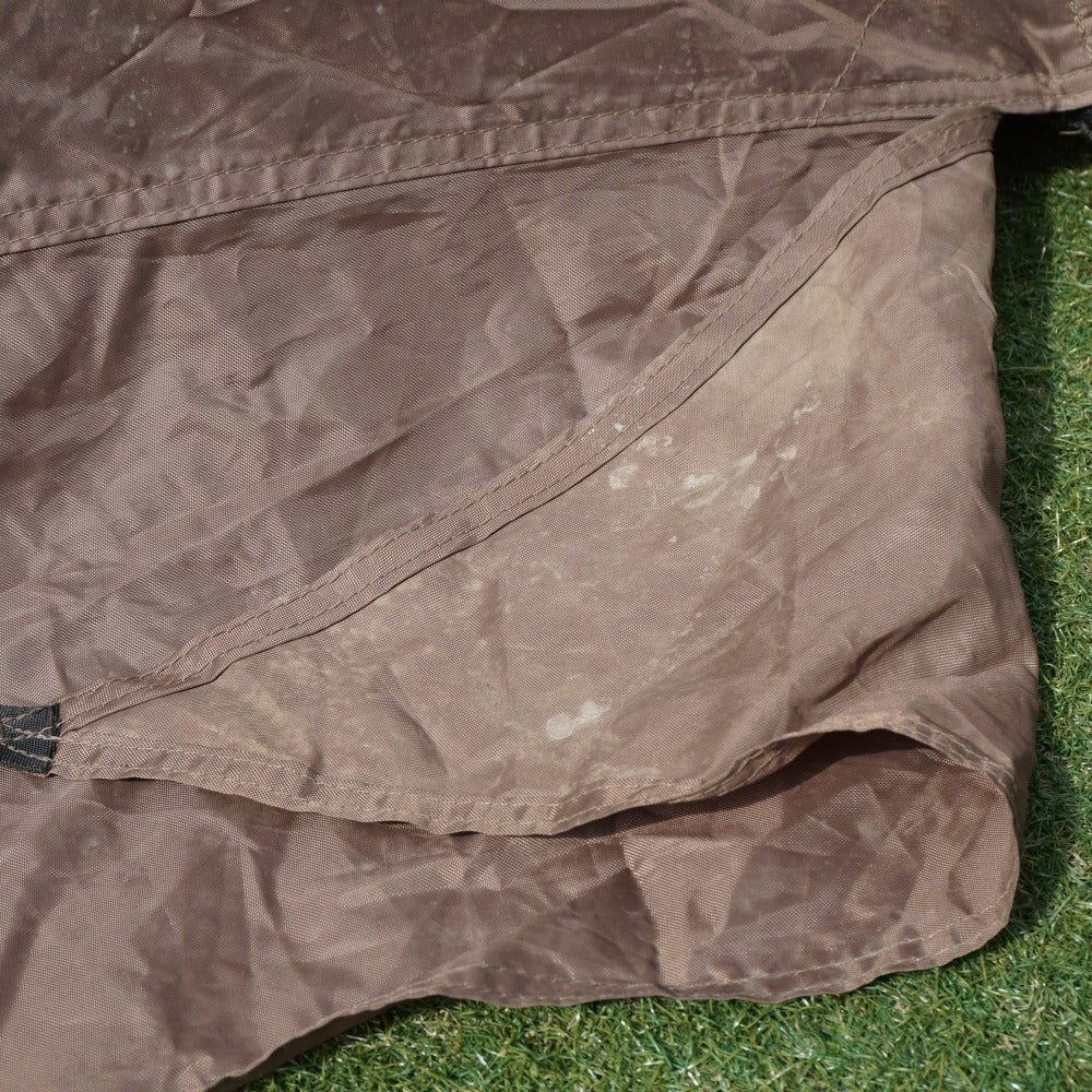 スカート部に1ヶ所、直径3mmほどの破れがある他、薄い土汚れがございます。 また、インナーテント内側とシェルター内側にベタつきがごくわずかにあり、 ドアパネル内側のシームテープに、少し浮いている箇所がございますが、 その他目立った汚れやフレームの変形などなく、状態は良好です。 |