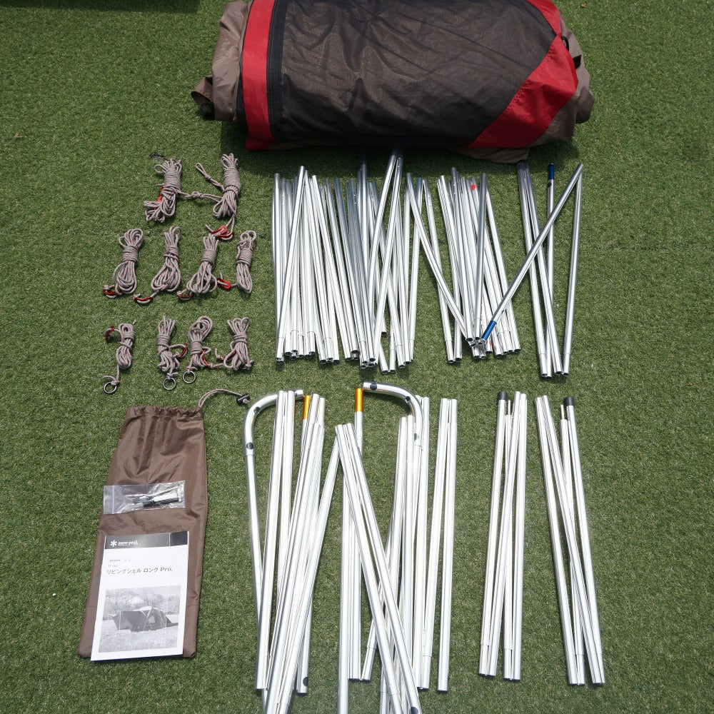| 付属品 | 収納ケース フレームケース、自在付ロープ10本(二又用7.0m×2/3.5m×4/Oリング付2.0m×4)、シームグリップ剤、説明書、ペグケース |