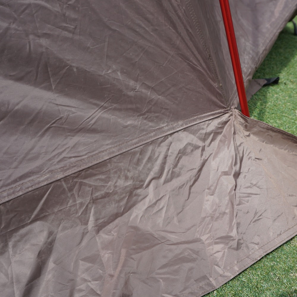 インナーテントのフロアは、わずかに傷みがございますがベタツキなどはございません。 フライシートは、全体的に薄く土汚れがあり、特にスカート部分に多く見られますが、 インナーテントのボトムには汚れはなく、その他目立った汚れもないため、状態は良好です。 また、当店にて、組み立て確認済みです。 |