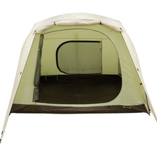 付属しているアップライトポールで前室パネルを跳ね上げることで、日差しや雨を避けられる開放的なリビングができあがります。