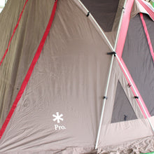 | 仕様 | 材質:本体/150Dポリエステルオックス、ルーフ部/遮光ピグメントPUコーティング耐水圧3,000mmミニマム、ウォール部/耐水圧1,800mmミニマム・テフロン撥水加工・UVカット加工、フレーム/A6061(φ16mm・19mm) |