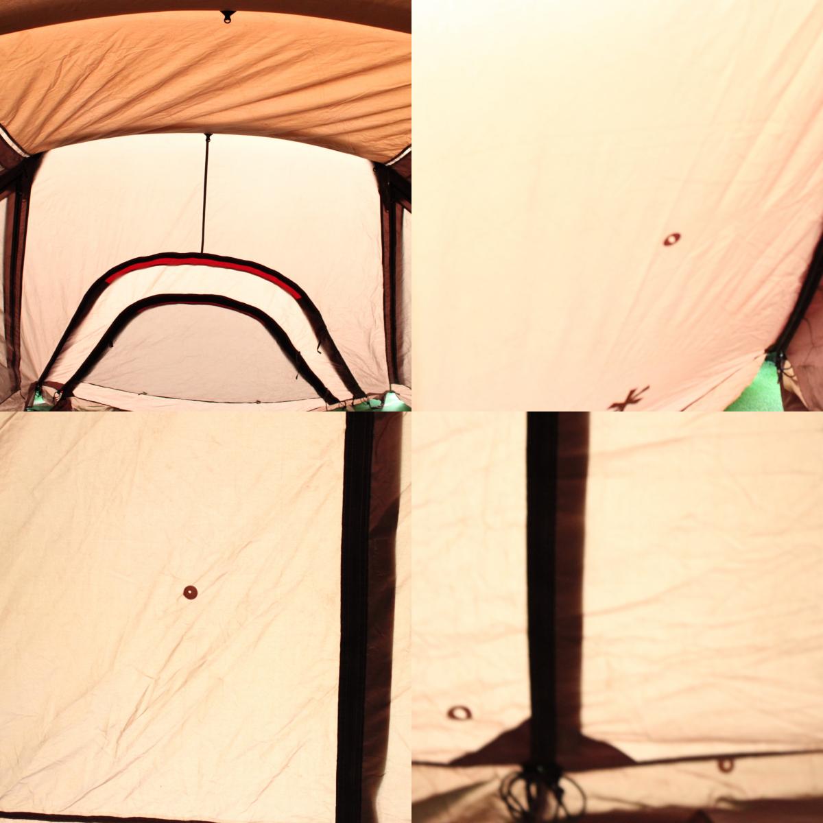 使用感がございます。 補修跡:2~4ヶ所所、2~4ヶ所所 本体に数か所の補修跡がございます。 Cフレームの節のつなぎ目に変形がございます。 Cフレーム、リッジポールに歪みがございます。設営には問題ございません。 ジュラルミンペグ(21cm×26)は付属しておりません。 設営確認済です。 |