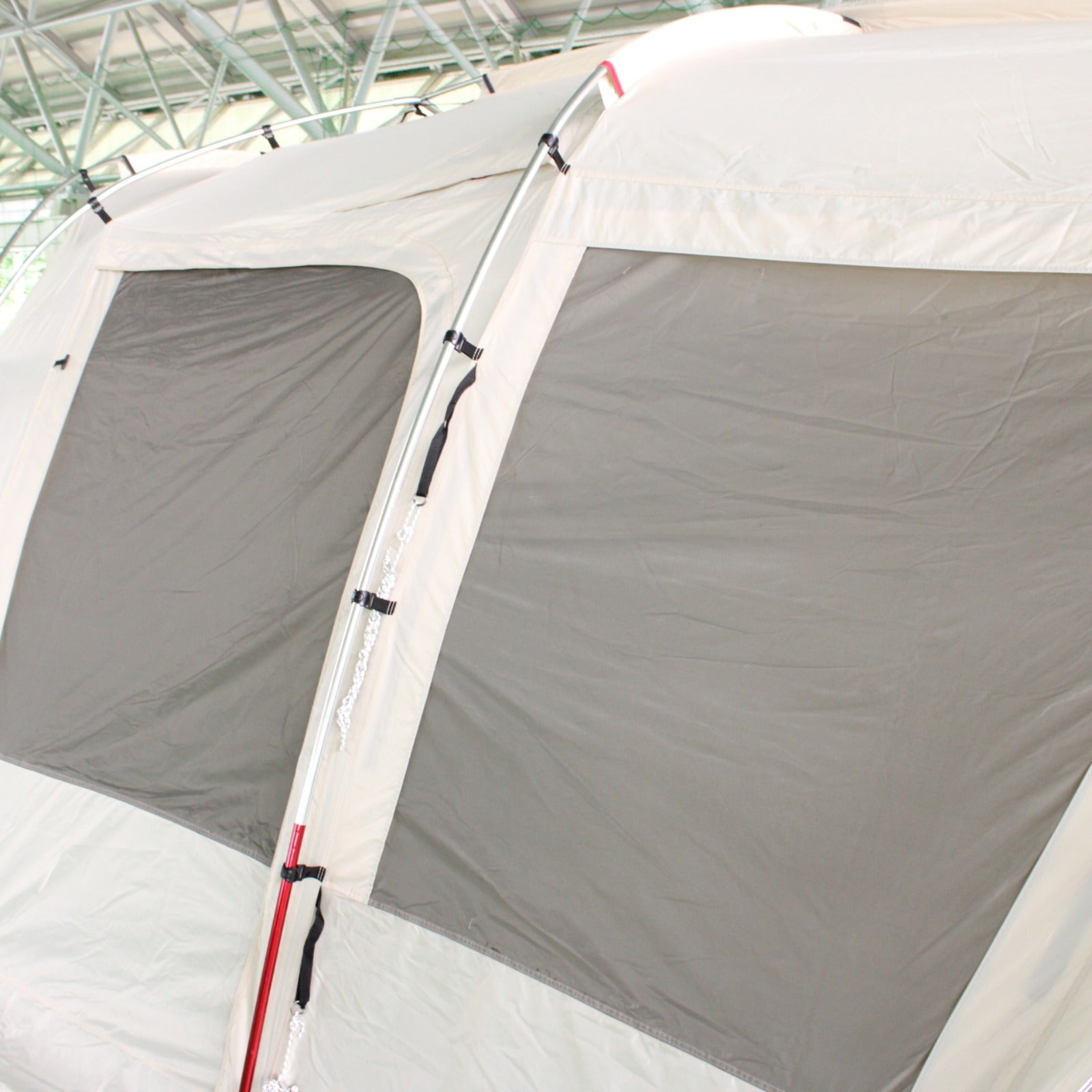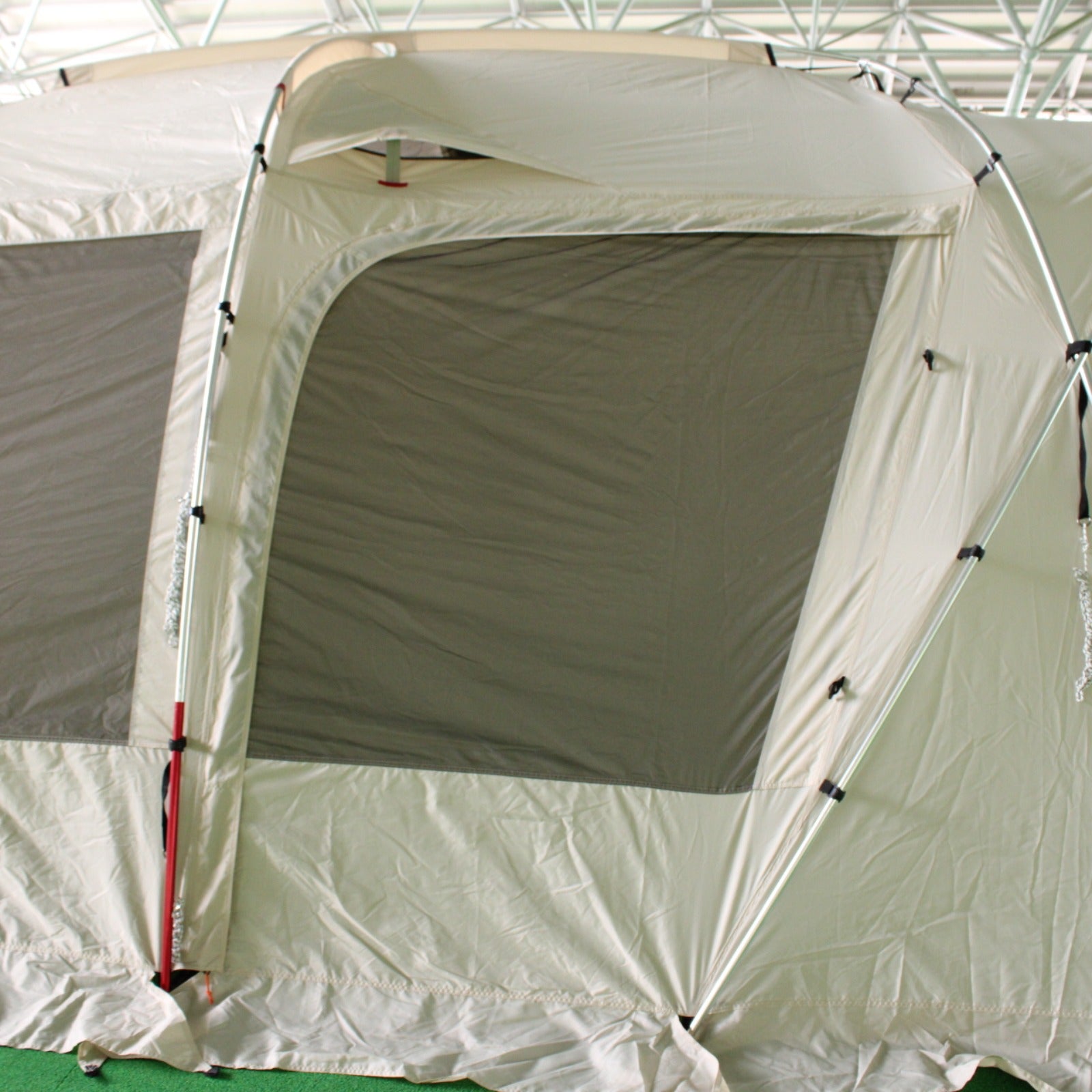 | セット内容 | 本体、ルーフシート、インナールーム、グランドシート、インナーマット、Aフレーム(×2)、Cフレーム(×2)、センターフレーム、リッジポール、ジュラピンペグ(21cm×27)、自在付ロープ(1.5m×2、2.5m×4、3.5m×6)、シームグリップ剤、ペグケース、グランドシートケース、インナーマットケース、ルーフシートケース、フレームキャリーバッグ、キャリーバッグ、コンプレッションベルト(×2) |