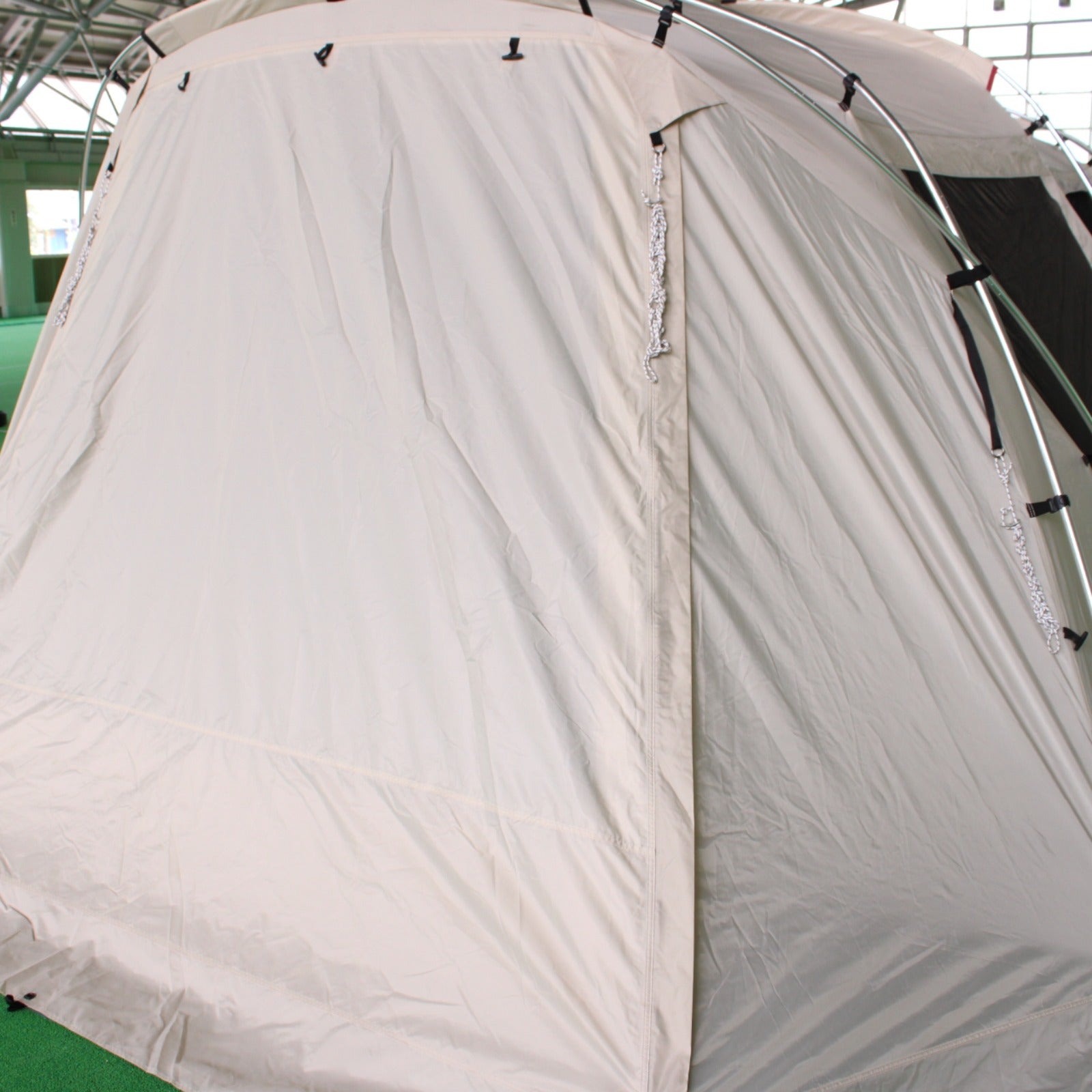 | 仕様 | 材質:・本体/150Dポリエステルオックス、PUコーティング耐水圧1,800mmミニマム(ルーフ部)、UVカット加工、テフロン撥水加工、150Dポリエステルオックス、PUコーティング耐水圧1,800mmミニマム(ウォール部)、UVカット加工、テフロン撥水加工 ・フレーム/A6061(φ19mm,16mm) ・ペグ/ジュラルミン ・インナールーム/68Dポリエステルタフタ(ウォール)、210Dポリエステルオックス、PUコーティング耐水圧1,800mmミニマム(ボトム) ・ルーフシート/75Dポリエステルタフタ・PUコーティング耐水圧1,800mmミニマム、UVカット加工、テフロン撥水加工 ・インナーマット/表生地:68Dポリエステルタフタ・PUコーティング、中芯:ウレタン5mm、裏生地:PVC ・グランドシート/210Dポリエステルオックス、PUコーティング耐水圧1,800mmミニマム |
