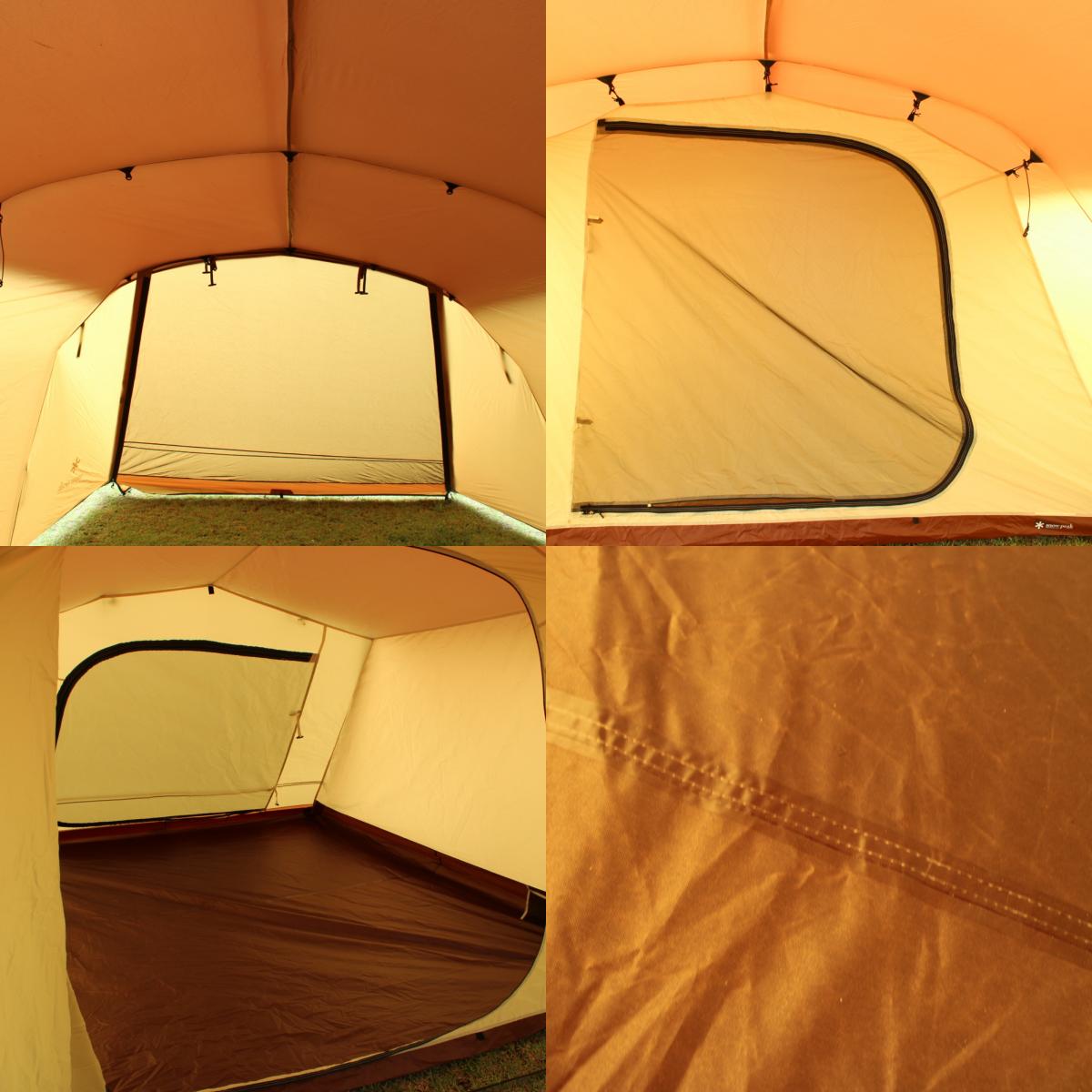 | 仕様 | 材質:本体/75Dポリエステルタフタ・PUコーティング耐水圧1,800mmミニマム・UVカット加工・テフロン撥水加工、ルーフシート/75Dポリエステルタフタ・PUコーティング耐水圧1,800mmミニマム・UVカット加工・撥水加工、マッドスカート/210Dポリエステルオックス・PUコーティング、インナーウォール/68Dポリエステルタフタ、ボトム/210Dポリエステルオックス・PUコーティング耐水圧1,800mmミニマム、フレーム/A6061(φ16mm+φ14.5mm) |