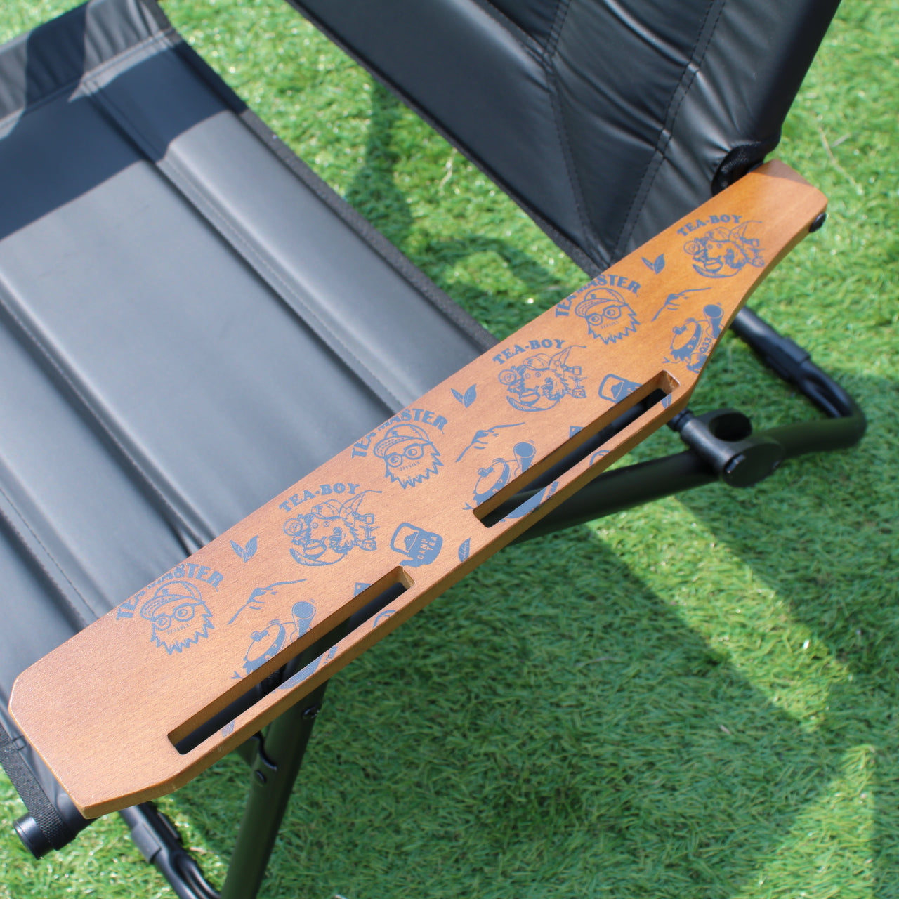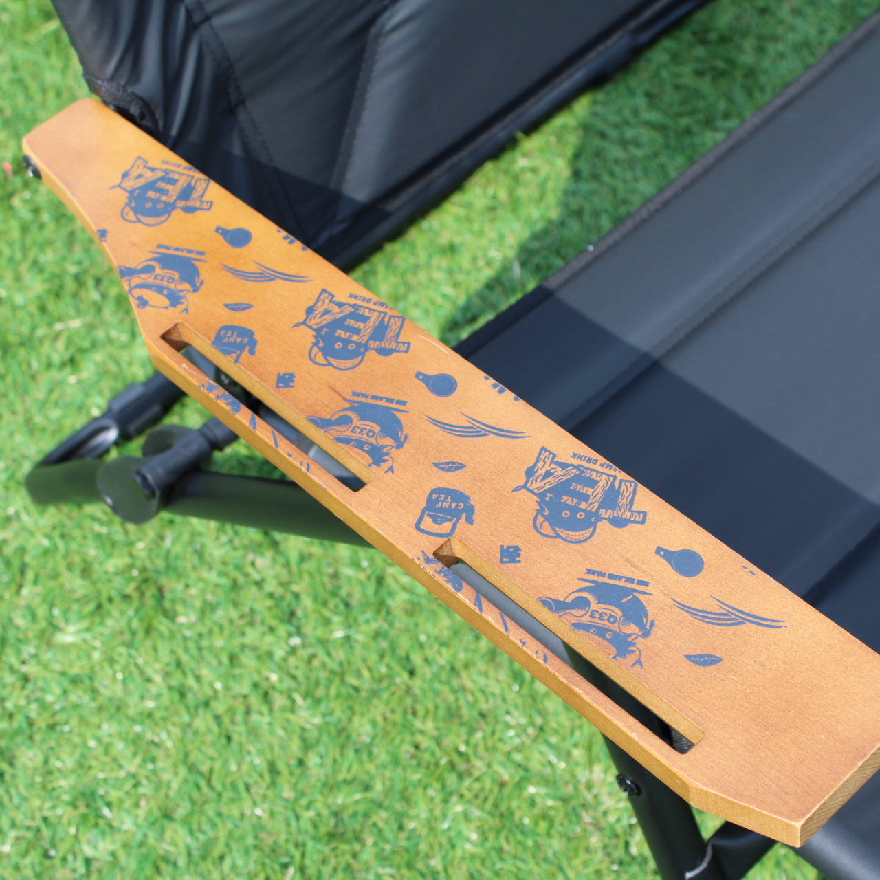 あまり使用感はございません。 フレーム脚の接地部に使用によるキズがございます。 肘掛け部にアウトドアモンスターがシルクスクリーンプリントされています。 |