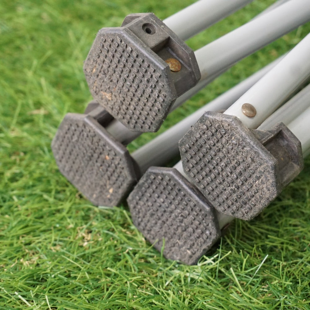 脚の接地面に細かなキズや土汚れがあり、
