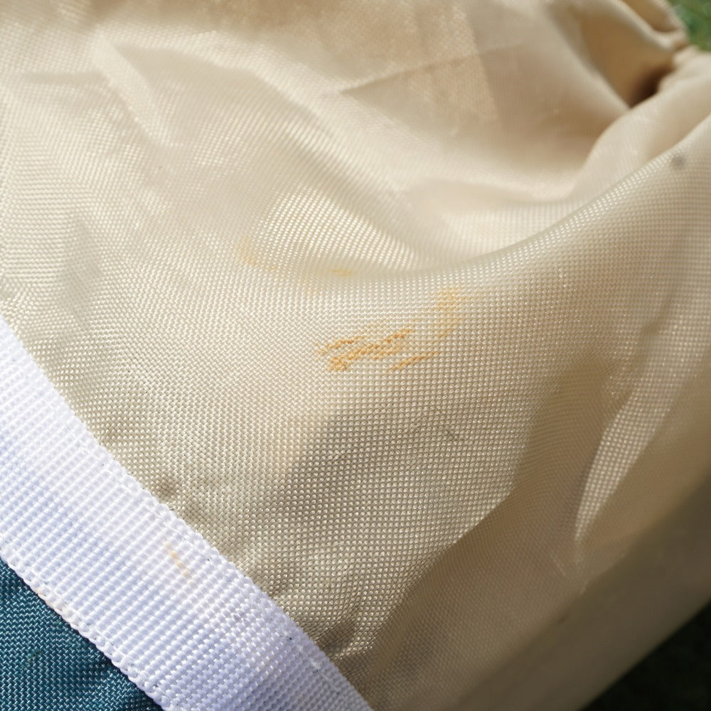 収納ケースのベージュ色の辺りに、一部薄い茶色の汚れはございますが、 チェアの座面や背面に、目立った汚れなどなく、状態は良好です。 |