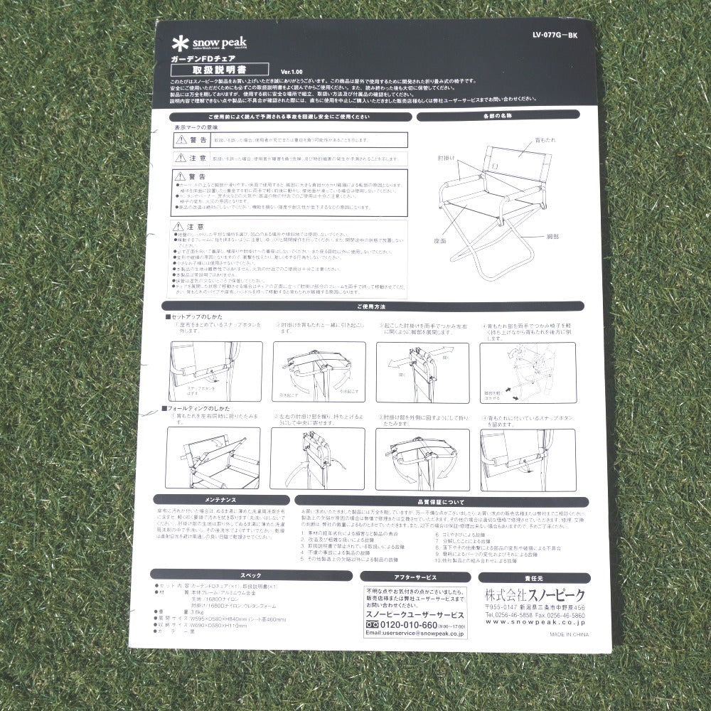 | 商品説明 | スノーピークのガーデンFDチェア/LV-077G-BK です。 強度があり丈夫なCORDURA生地が座布に使用されている、フォールディングチェアです。 |