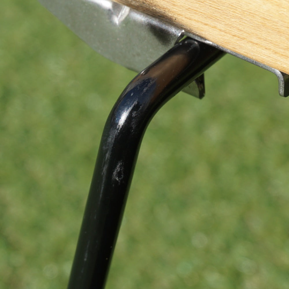 脚フレームの接地面や天板付近に、使用による細かな傷が少しあり、 天板にも、薄い線キズが一箇所ございます。 また、蜜蝋を薄く塗った形跡がございます。 そのため、収納ケース内側の天板収納スペースに、 わずかにベタつきはございますが収納には問題ありません。 その他天板やフレームに変形や目立った汚れなど、使用感はほとんどなく、状態は良好です。 |