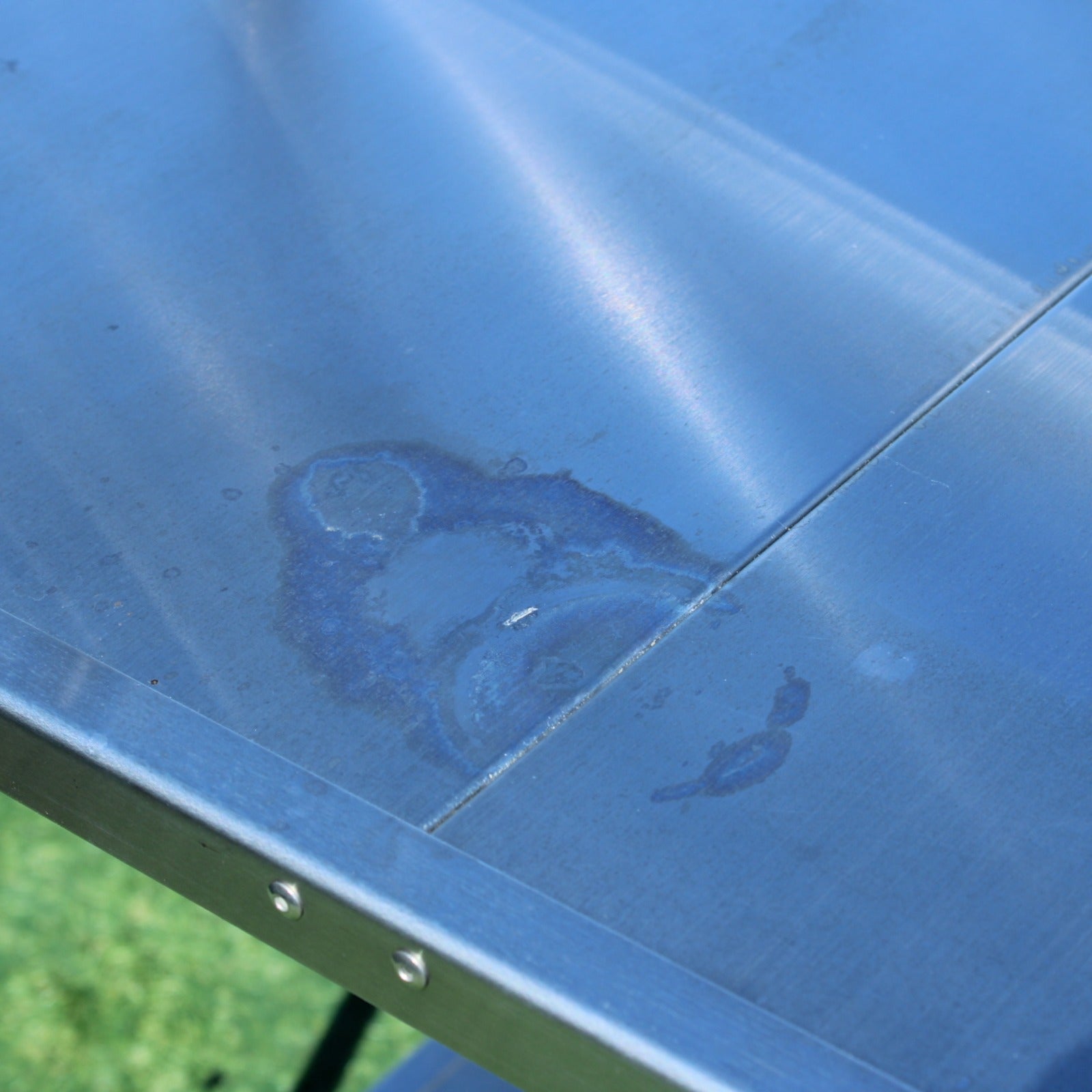 使用感がございます。 上フレームを差し込む右手側の上フレーム固定ネジのネジやまが甘く、締めることができません。 天板にスレ、小さなキズ、色のくすみ等がございます。 ※画像が全体的に青っぽく写ってしまっておりますが、通常のステンレスカラーです。 |