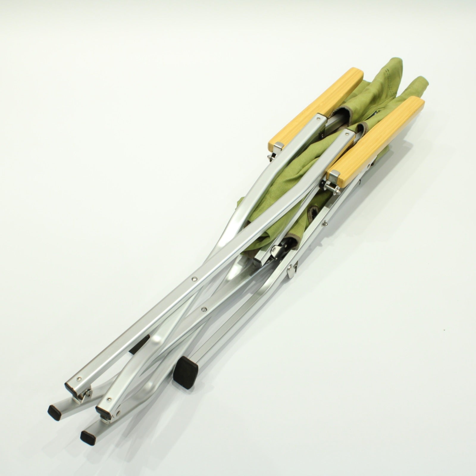 | 仕様 | 材質:フレーム/アルミアルマイト加工、肘掛け/竹集成材、金具/ステンレス、シート/6号帆布 |