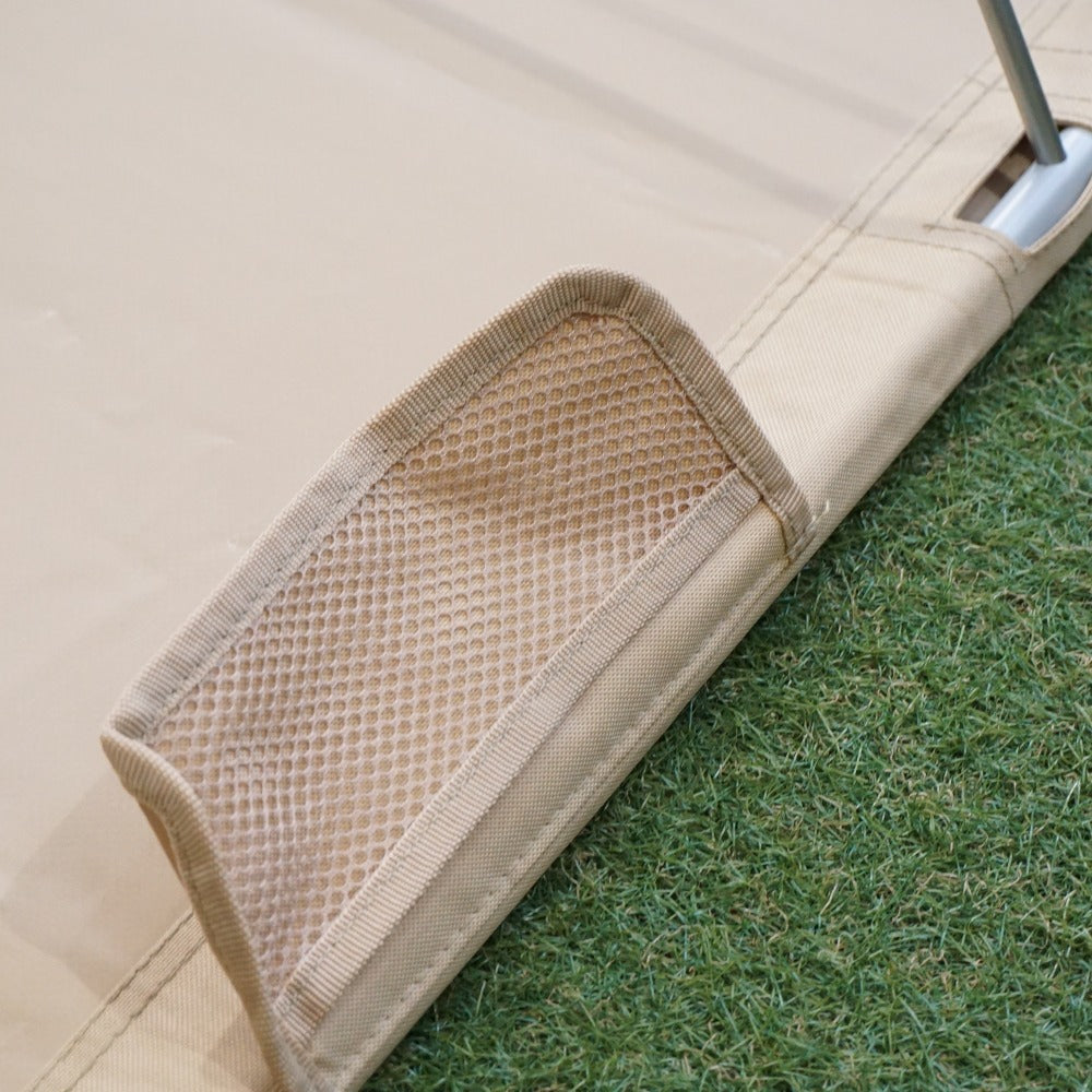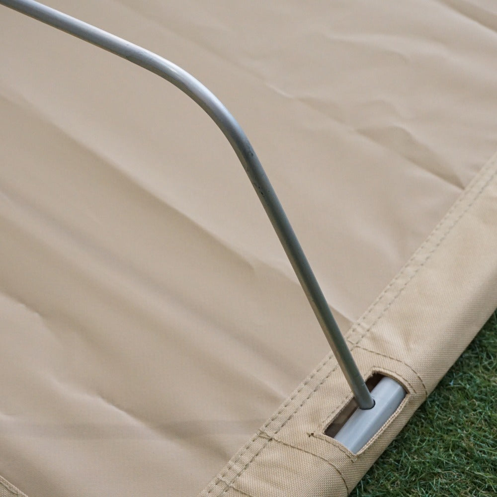 | 商品説明 | ディーオーディー(DOD)のワイドキャンピングベッド/CB1-100 です。 地面の凸凹の影響も受けにくいため、 キャンプで快適に就寝できる組み立て式のベッドです。 ※収納ケースは旧タイプです 地面から浮いた状態で就寝できるので夏は涼しく、冬は寒さを和らげます。 また、コットの側面にサイドポケットがあり、 スマホやメガネなどを収納することができます。 ・カラー:ベージュ ・サイズ(約):W77×D190×H19cm ・収納サイズ(約):W21×D83×H5cm ・重量(付属品含む):約4.4kg ・材質:フレーム→スチール ベッド本体→ポリエステル(PVC コーティング) ・静止耐荷重:100kg |