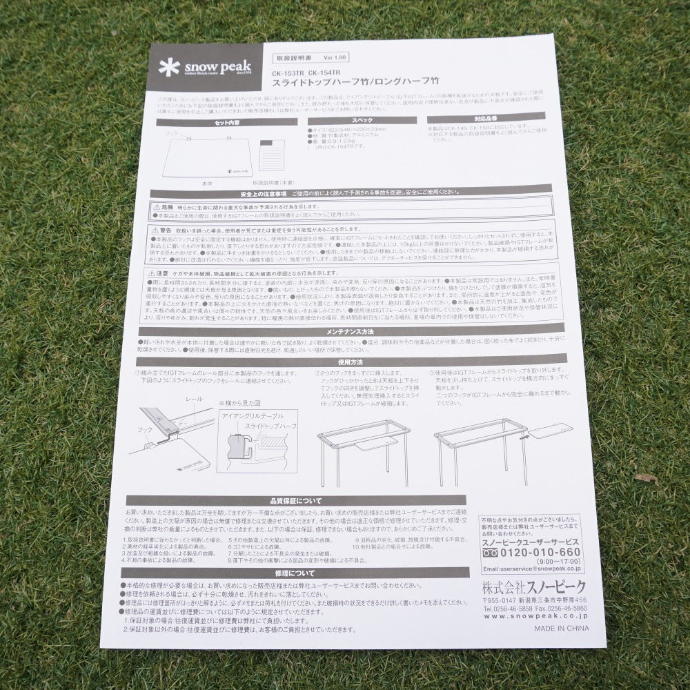 | 商品説明 | スノーピークのスライドトップロングハーフ竹/CK-154TRです。 アイアングリルテーブルの長辺に設置して、テーブルスペースを広げられます。 ロングフレーム用の1/2サイズです。 ・本体サイズ:548×220×33mm |