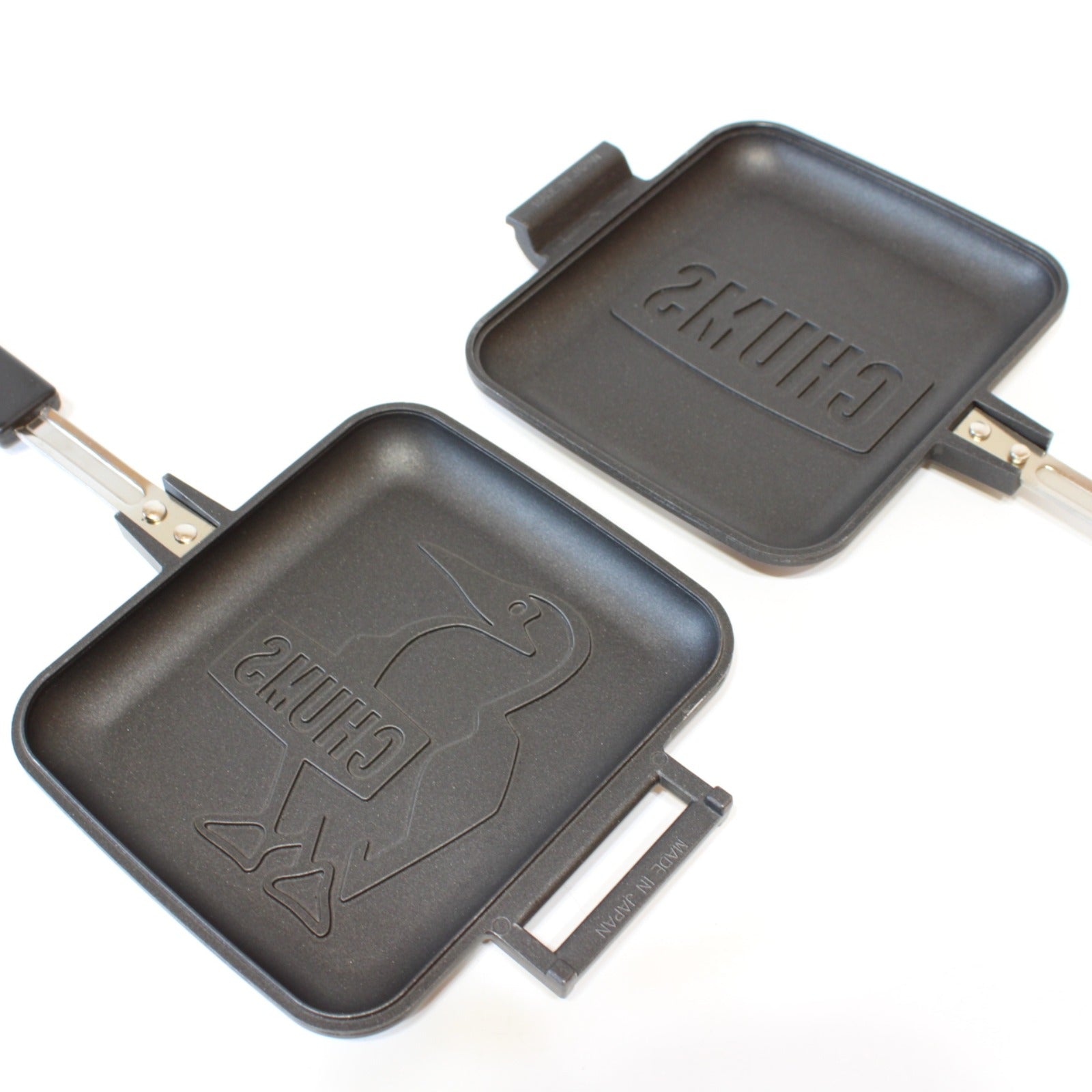 表面にブービーバード、裏面にCHUMSロゴの焼き目を付けられ、大人も子供もみんなが笑顔になれる可愛いホットサンドが作れちゃいます。 内側はフッ素樹脂加工が施されているのでこびりつきづらく、取り外し可能な蝶番仕様で洗い物も楽ちん。片側のみをフライパンのようにも使えるので、オリジナル焼き目付きのパンケーキや卵焼きも作ることができます。