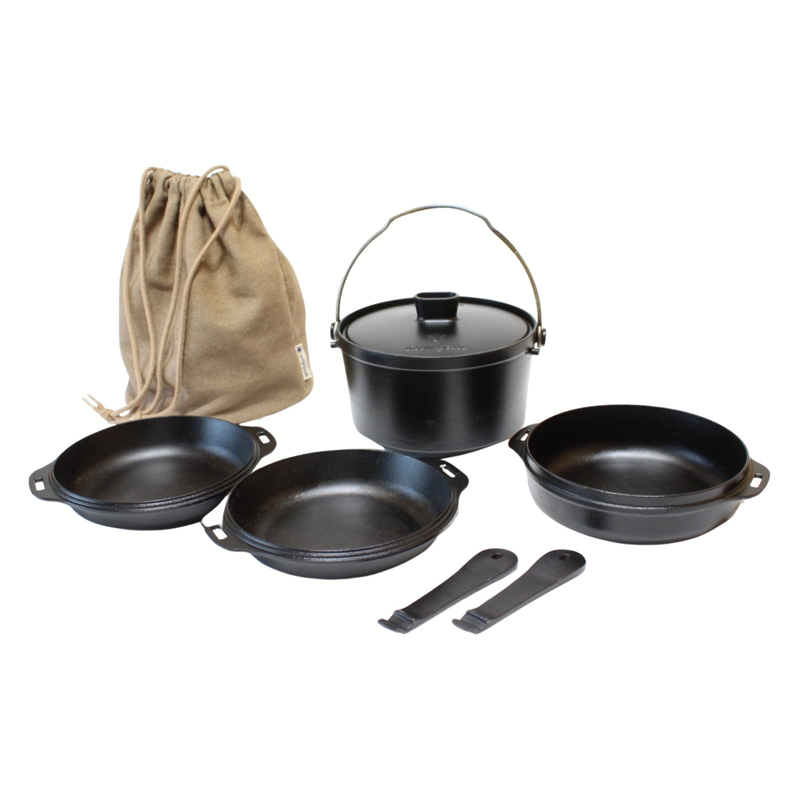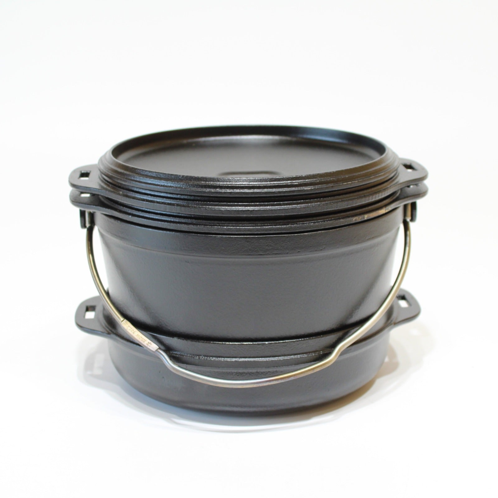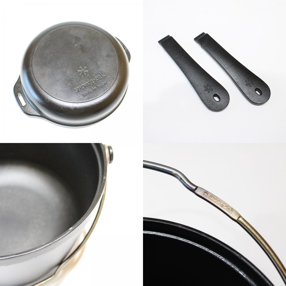 | 重量 | 4kg(リッド/0.5kg、スキレット/0.7kg、ポット/1.3kg、プレート/0.65kg、ハンドル/0.1kg) |