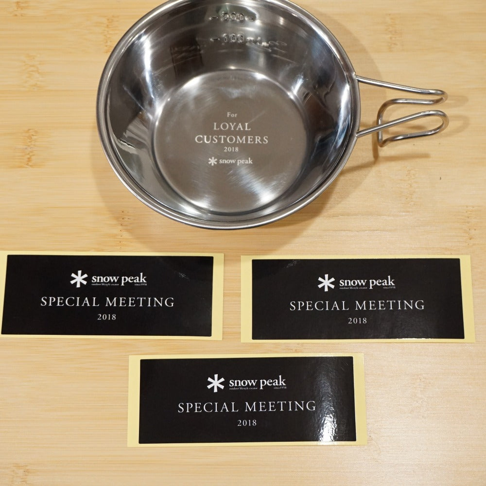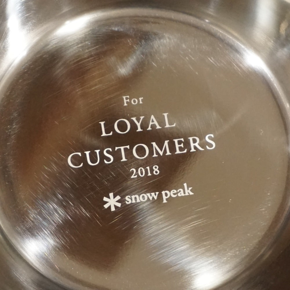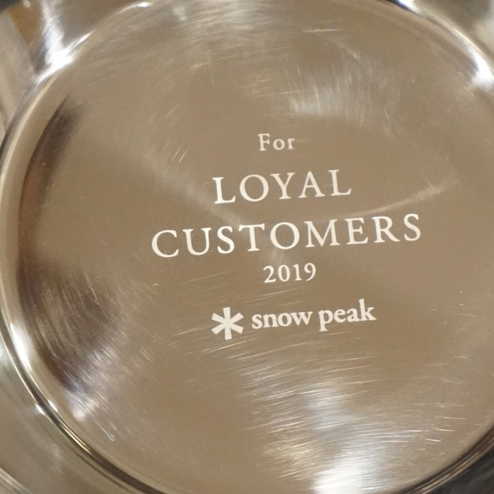 | 商品説明 | スノーピークのロイヤルカスタマーミーティングの記念品です。 ミラーポリッシュ加工されたシェラカップで、底に記念のレーザーマーキングが施されています。 ※ロイヤルカスタマーミーティングのステッカーはすべて2018年度のものになります。 |