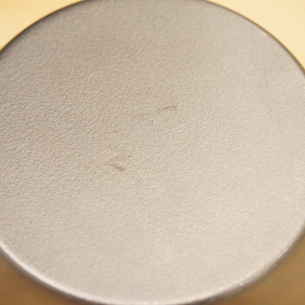 内側の淵付近に、3cmほどの汚れは一ヵ所あり、 外側の底面に、かなり薄く油性ペンで書いた跡はございますが。 使用に支障となるような変形や汚れなどはなく、状態は良好です。 |