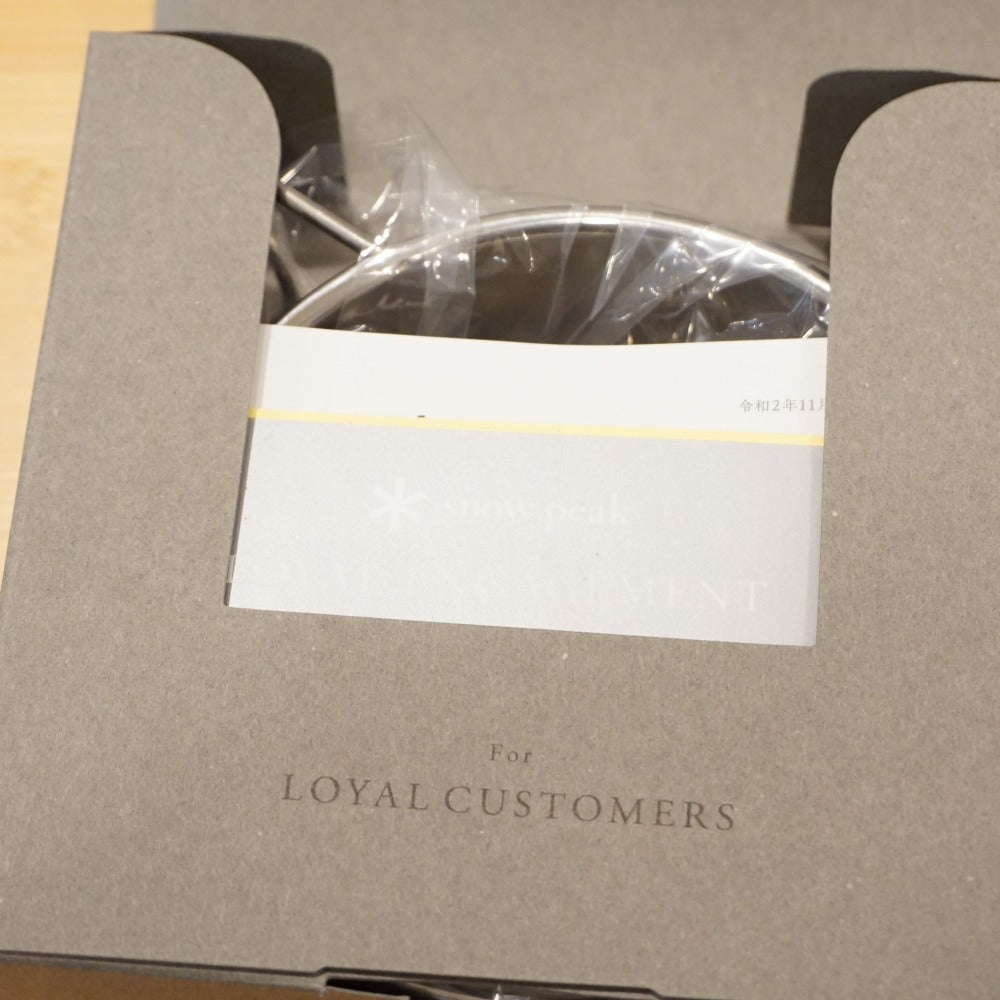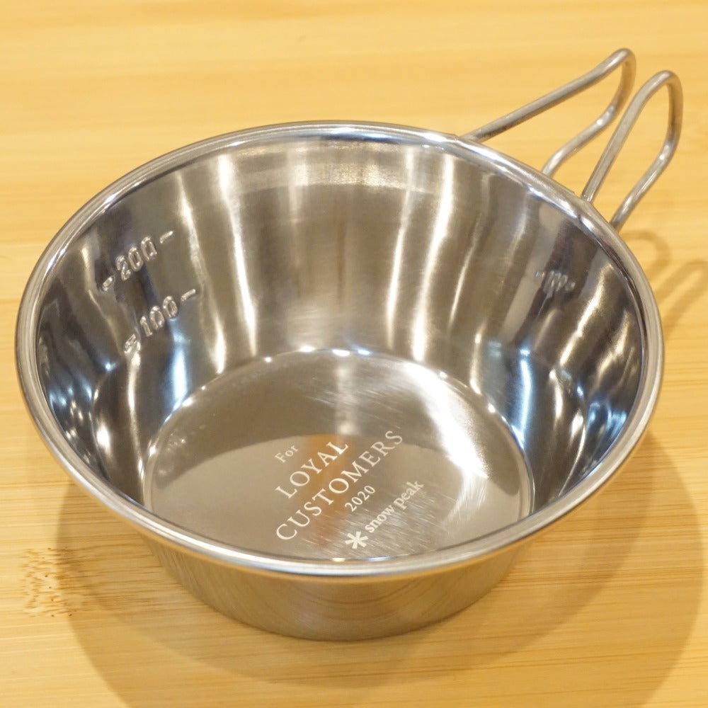 | 商品説明 | スノーピークの2020年度ロイヤルカスタマーミーティングの記念品です。 ミラーポリッシュ加工されたシェラカップで、底に記念のレーザーマーキングが施されています。 |