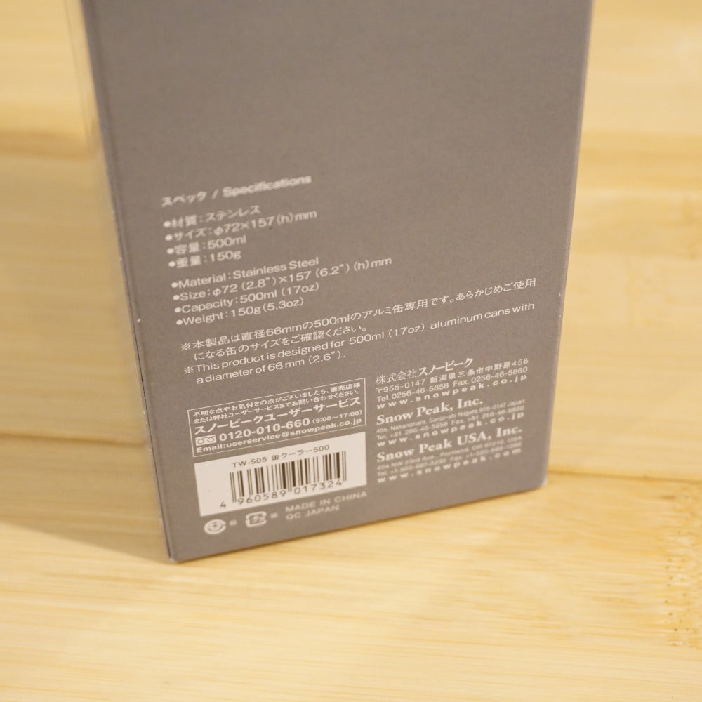 | 商品説明 | スノーピークの缶クーラー500/TW-505です。 真空二重構造の保温性に優れたカップとなります。 500mm缶がそのままスッと入ります。 素材:ステンレス サイズ:φ72×157(h)mm 重量:150g 容量:500ml |