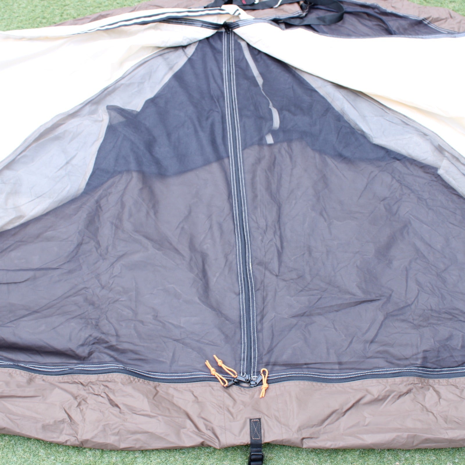 あまり使用感はございません。 本体に細かな薄いシミがございます。 接地面に軽度の土汚れがございます。 写真に掲載はございませんが、ジュラルミンペグ(17cm×6)は付属しております。 |