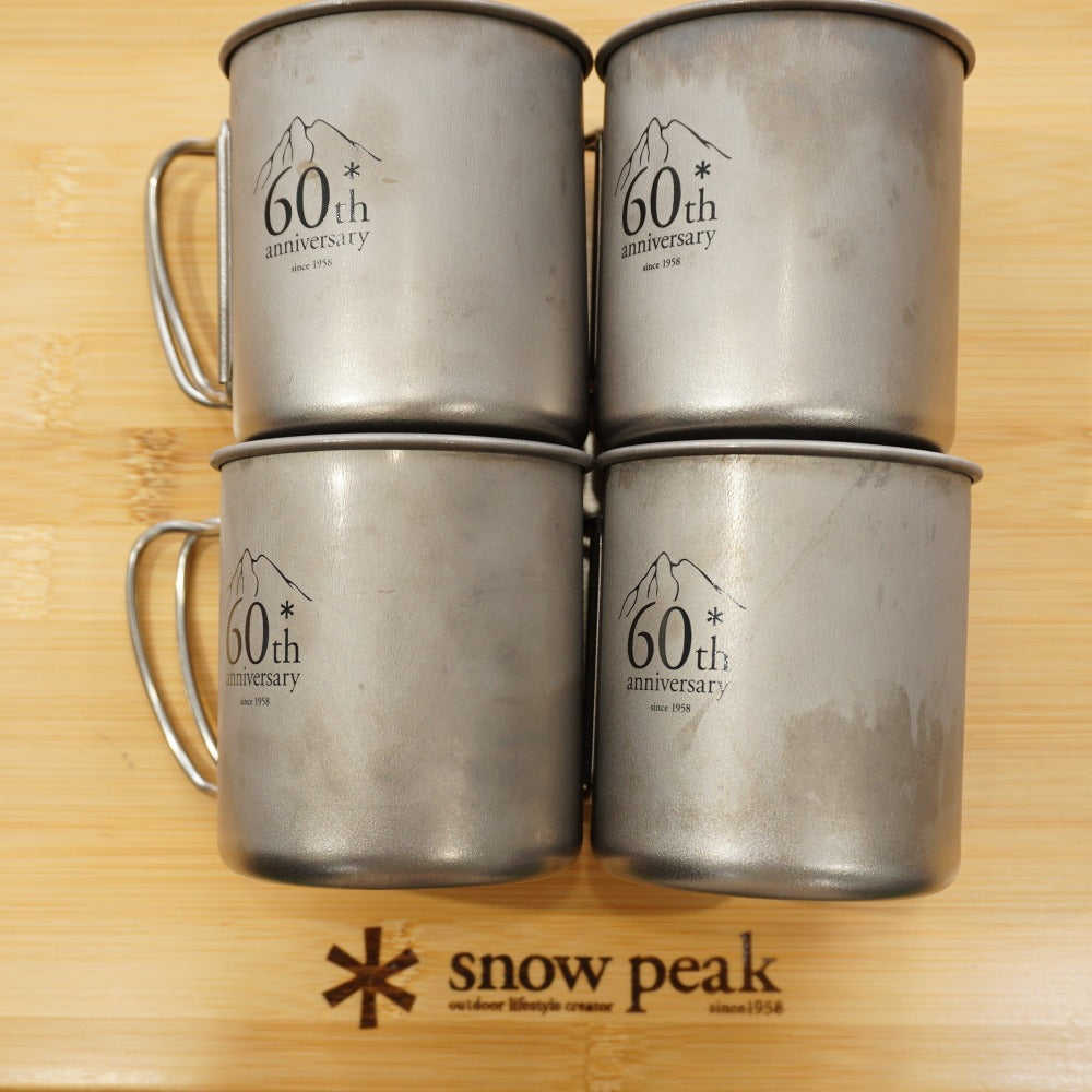 商品説明 | スノーピークのチタンシングルマグ300 4個セットです。 2018年60周年記念として限定発売されたアイテムで歴代のロゴがプリントされています。 1.スノーピーク60周年記念 チタンシングルマグ300 Oval(オーバル) 2.スノーピーク60周年記念 チタンシングルマグ300 Mountain(マウンテン) 3.スノーピーク60周年記念 チタンシングルマグ300 Letter(レター) 4.スノーピーク60周年記念 チタンシングルマグ300 Asterisk(アスタリスク) |