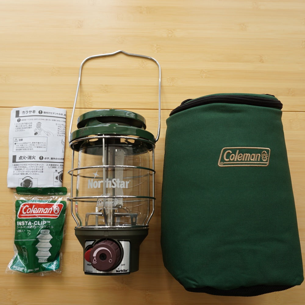 商品説明 | コールマンのノーススターランタンです。 OD缶(ガス)利用で安定した火力が特徴の定番ランタンです。 動作確認済です。 また、グローブ(ガラス)は割れていたため新品に交換してあります。 |
